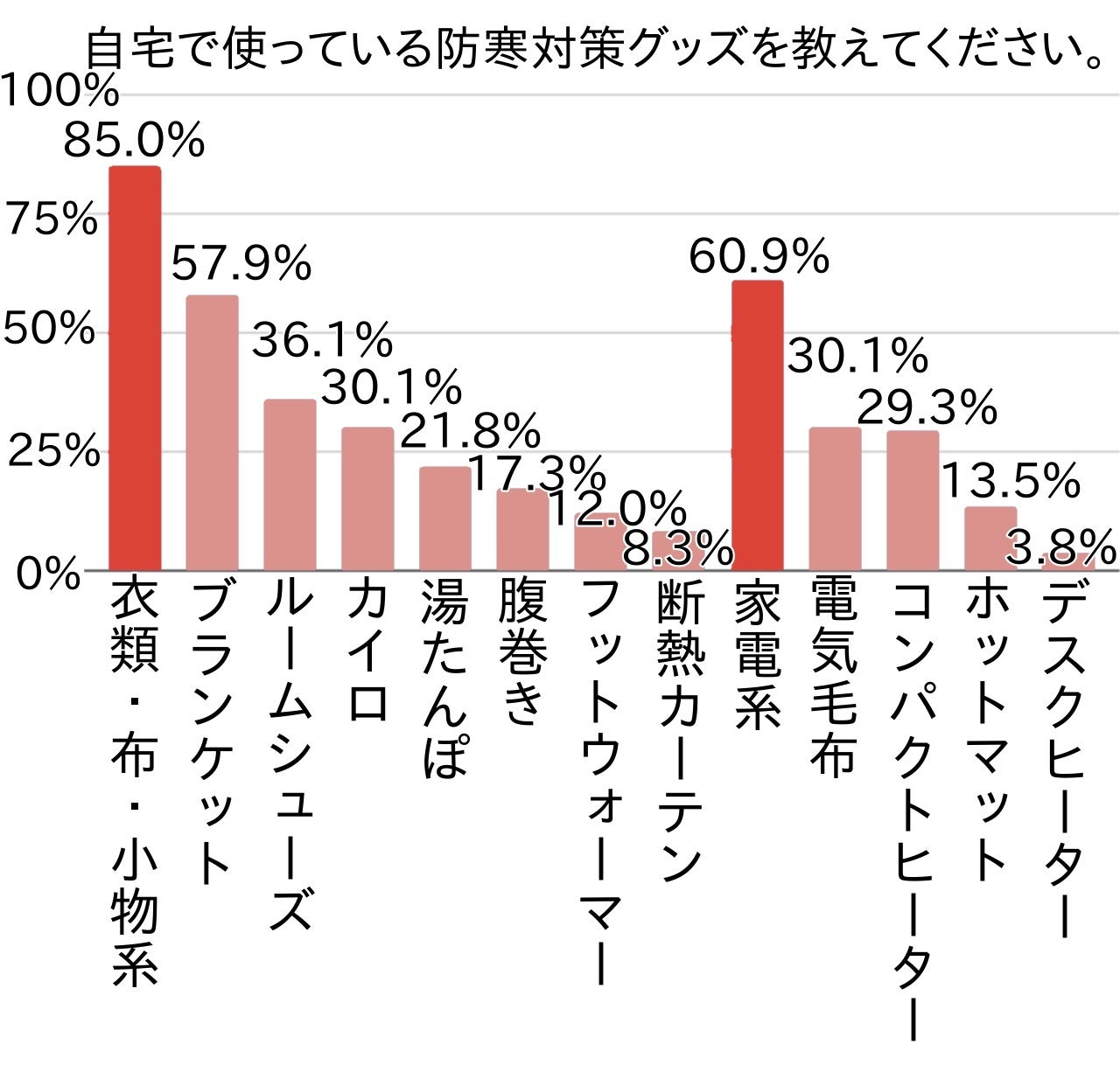 アンケートでは次に、自宅で使っている防寒対策グッズについて尋ねてみました。