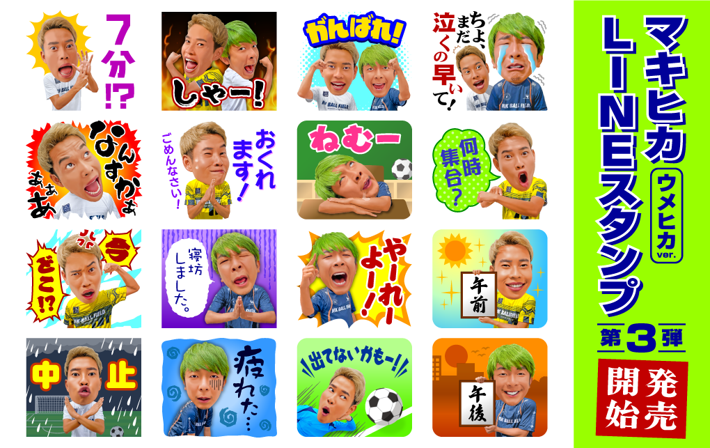 サッカー系YouTuber「マキヒカ」のLINEスタンプ第3弾ウメヒカVer.が販売開始です!