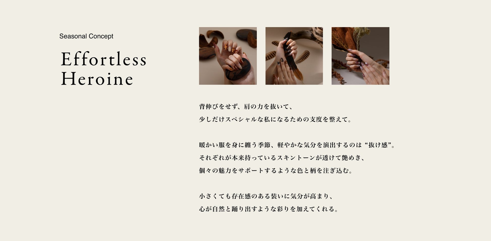 2023年秋冬商品から、違和感のないフィット感や簡単な使用方法、サロンと同じボリュームと密着感、エイジレスネイルの機能性などはそのままに、品質をより一層向上させるためリニューアルいたしました。