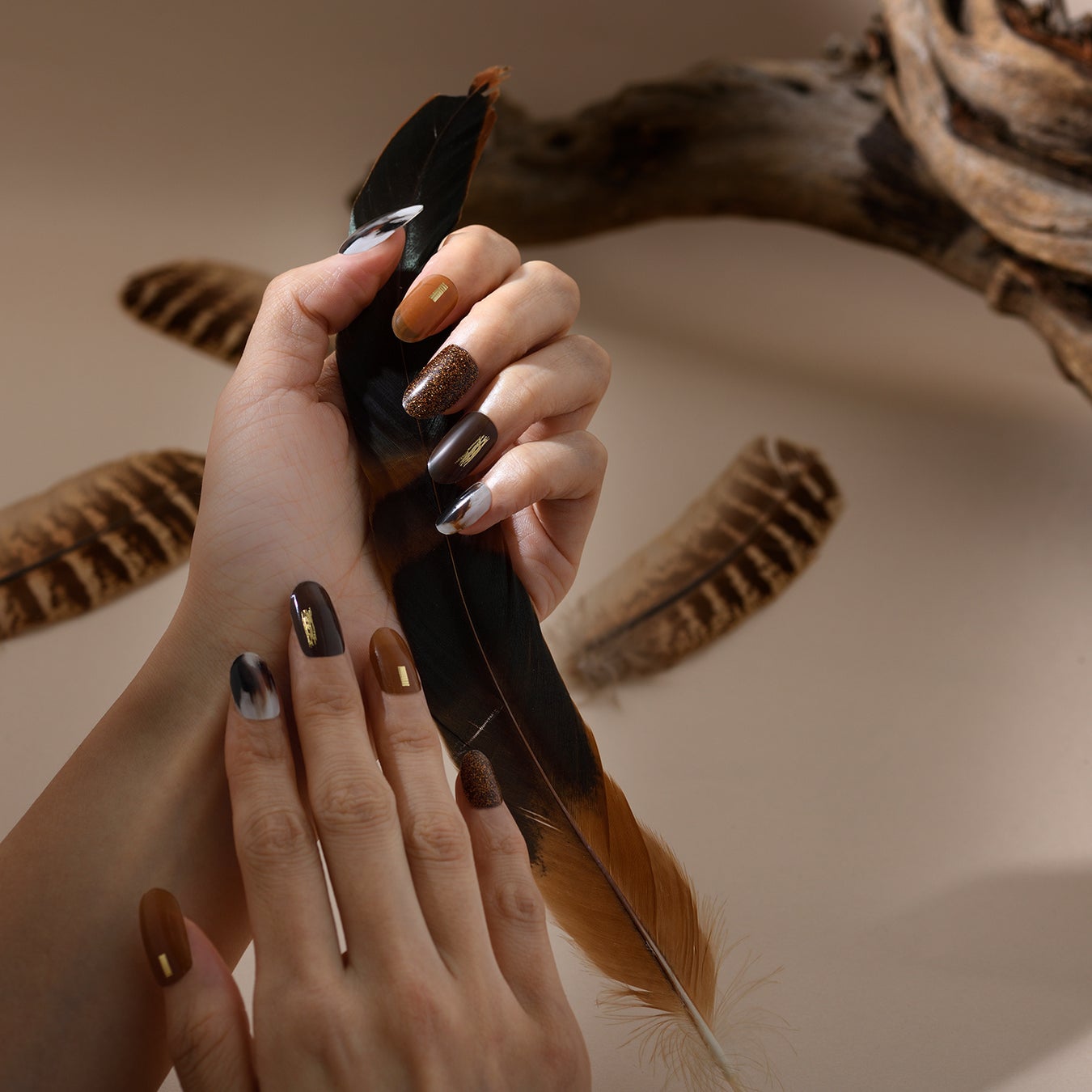 温かみのあるベッ甲は手元を柔らかな光で包み込み、大胆なボルドーは秋ならではのドラマティックな指先へといざなう。情熱的で洗練されたバランス感に心惹かれる。