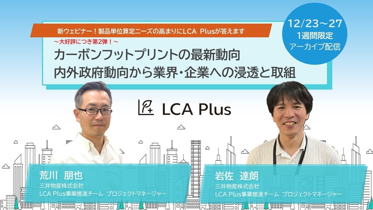 【三井物産/LCA Plus】12月23日(月)~27日(金)「カーボンフットプリント最新動向ウェビナー内外政府動向から業界・企業への浸透と取組」アーカイブウェビナー開催のお知らせ