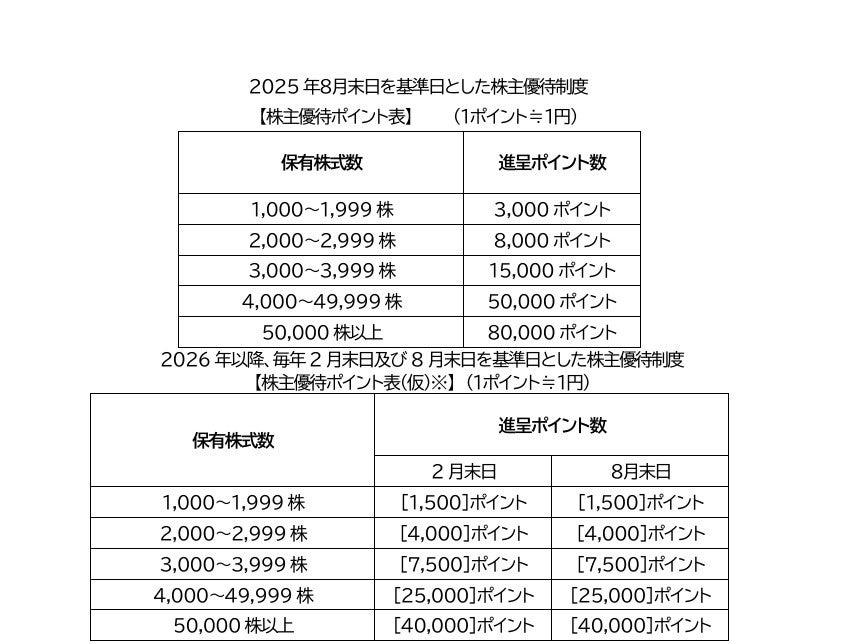 2026/8期における実際の進呈ポイント数は、2025/8期 通期決算発表のタイミングで公表予定です。