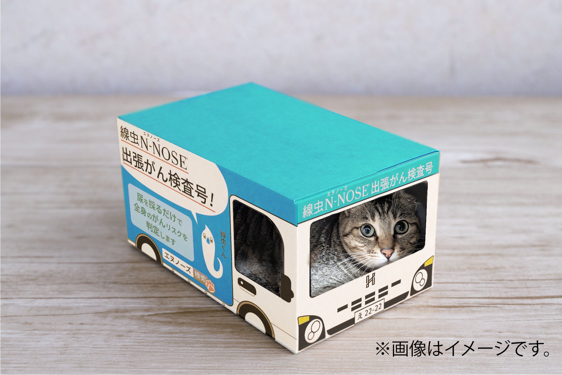 また、このモニターキャンペーンに当選された方にはモニター限定特典として「猫ちゃん専用 線虫N-NOSE 出張がん検査号」をお届け!ダンボールを組み立て飼い主さんがちょっとアレンジして頂くと、あなたの猫ちゃん専用のトラックが完成します。