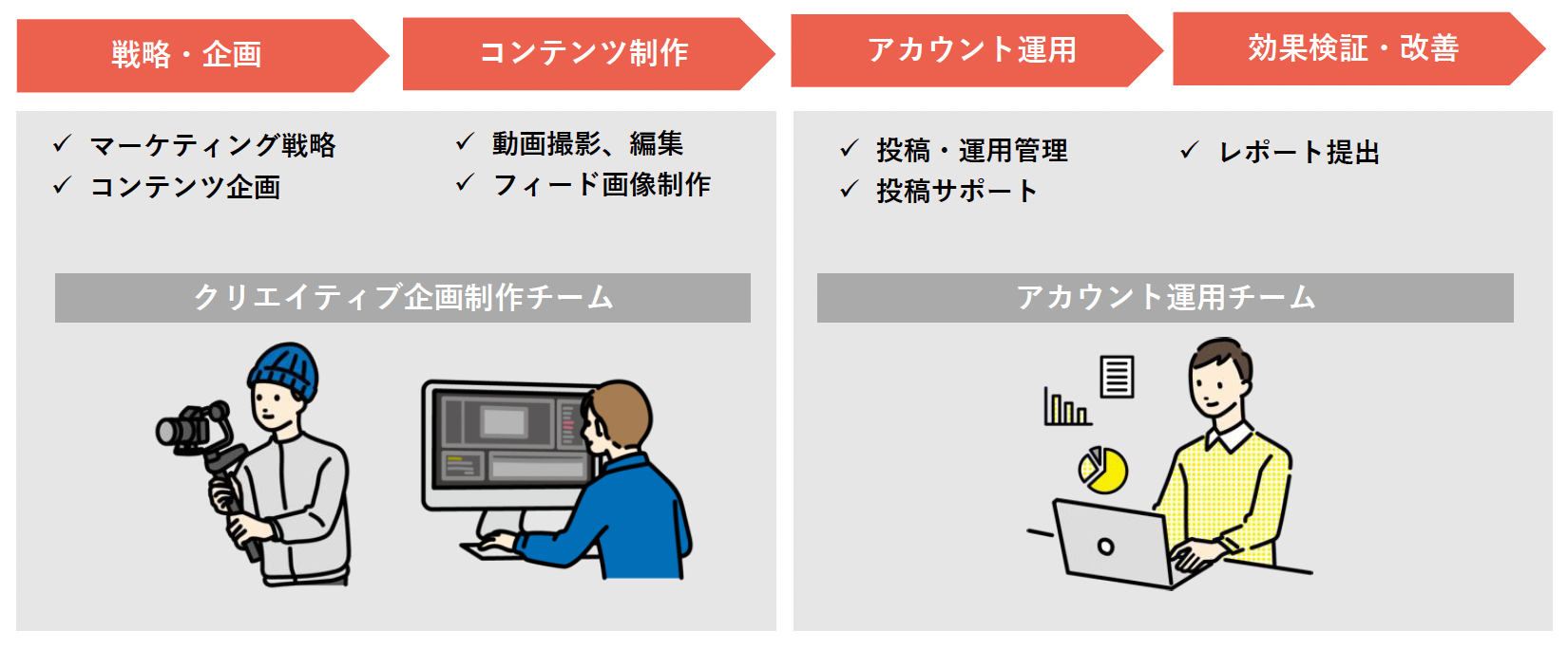 企画からコンテンツ制作、アカウント運用・検証改善までをワンストップで実行