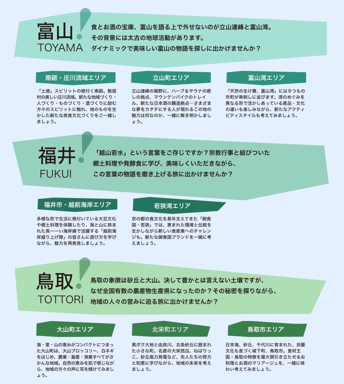西日本旅客鉄道株式会社(大阪市北区、代表取締役社長:長谷川 一明、以下「JR西日本」)は、沿線自治体をはじめとした地域の皆様との協働により、西日本エリアの活性化に向けた取り組みのひとつとして、2021年3月より社会変容に対応した新しいライフスタイル 「鉄道のある暮らし」を提案し、都市部と地方沿線エリアを思いのままに行き来しながら、より豊かなライフスタイルを実現いただくためのご支援を各地にて展開しております。この度、JR西日本は、富山県、福井県、公益社団法人 福井県観光連盟、鳥取県、株式会社JR西日本コミュニケーションズ、ジオリブ研究所合同会社、株式会社地域ブランディング研究所と共同して、「地域ものがたるアンバサダー ~美食地質学×第2のふるさとを巡る旅~」の事業取り組みと参加者募集を開始いたします。