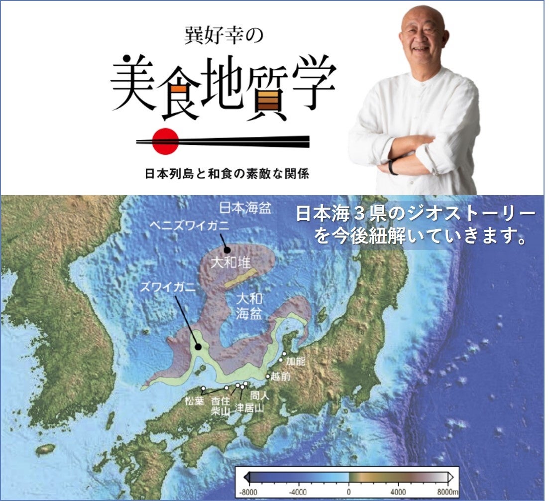 今回ひとつの軸となるテーマが、ジオリブ研究所(*1)の提唱する「美食地質学」です。日々自然災害の絶えない変動帯に位置する日本列島。その一方で、変化に富んだ厳しい条件の地形・地質だからこそ生まれた、豊かな海・山・里の幸、工夫を凝らした農林水産業の営み、それらの総合芸術としての食文化。オンラインでほとんどのものが手に入るようになった時代だからこそ、旅先でその地域にし かない固有の文化や、今しか味わえないもの、その土地への愛着から生み出される産品や料理などに触れると、強い共感や感動体験に繋がります。