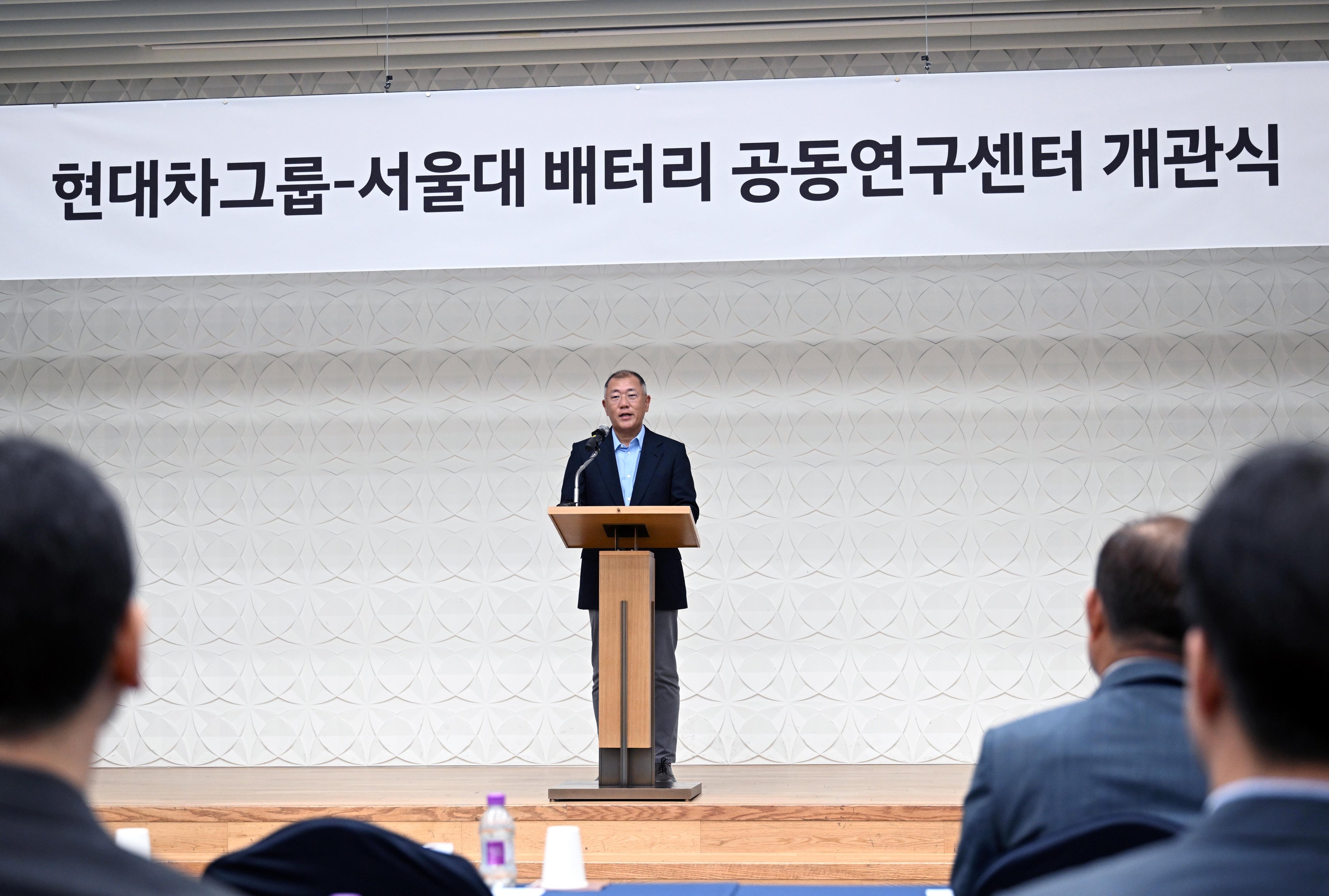 ソウル大学のユ・ホンリム総長は、この日の祝辞で次のように述べました。「バッテリー共同研究センターは、Hyundai Motor Groupの電動化分野における先制的イノベーションに従い、向上した性能と強固な安全性を備えたバッテリー技術の出発点となります。優秀な教員と大学院生がHyundai Motor Groupの有能な研究者と相乗効果を生み出し、バッテリーの基礎から応用に至るまで、さまざまな革新の基礎を築くことを期待しています。」