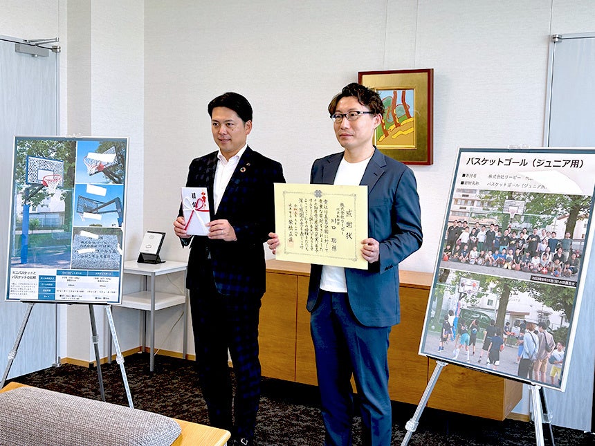 株式会社リーピー代表取締役・川口が、岐阜市の公園にバスケットゴールを寄付。市内では初となる個人の遊具寄贈になりました。