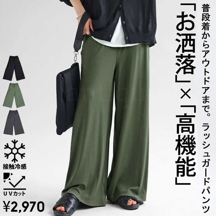 UVカット・接触冷感機能がついた、大人女子に心強いハイスペックな多機能ラッシュガードパンツです。さらっと落ち感の綺麗な生地でスタイルアップを叶えてくれます。普段使いから、お買い物やお散歩、アウトドアにも最適。シーンレスで活躍してくれる万能アイテムです。