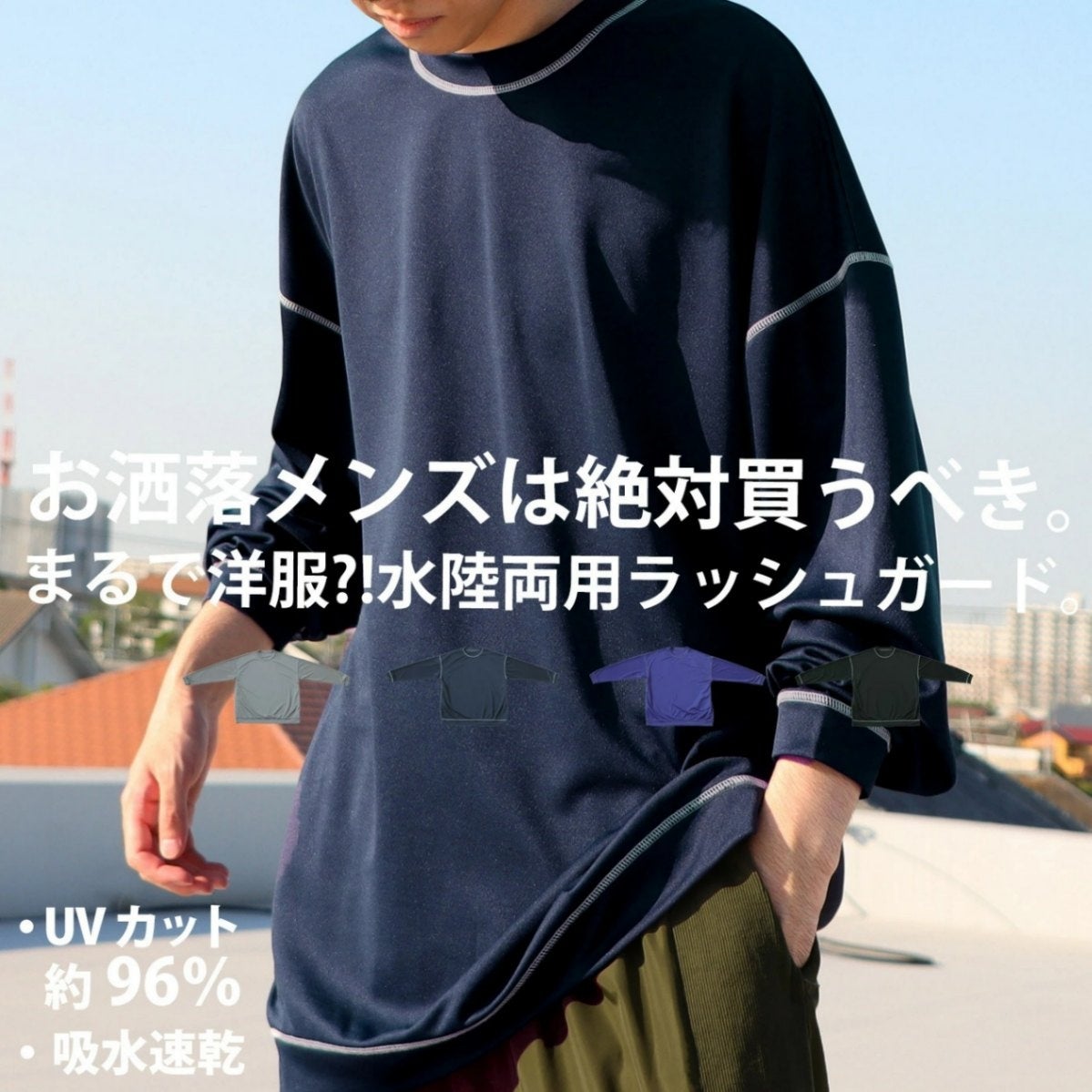 アウトドアはもちろん、フェスやスポーツウェアとしても活躍間違いなし!紫外線遮蔽率99%以上で、お洒落なのに機能性も抜群。速乾性が高く、水に濡れてもすぐ乾く「水陸両用」の生地を使用することで、ちょっとした水遊びにも、そのまま普段使いにも使える優れものです。