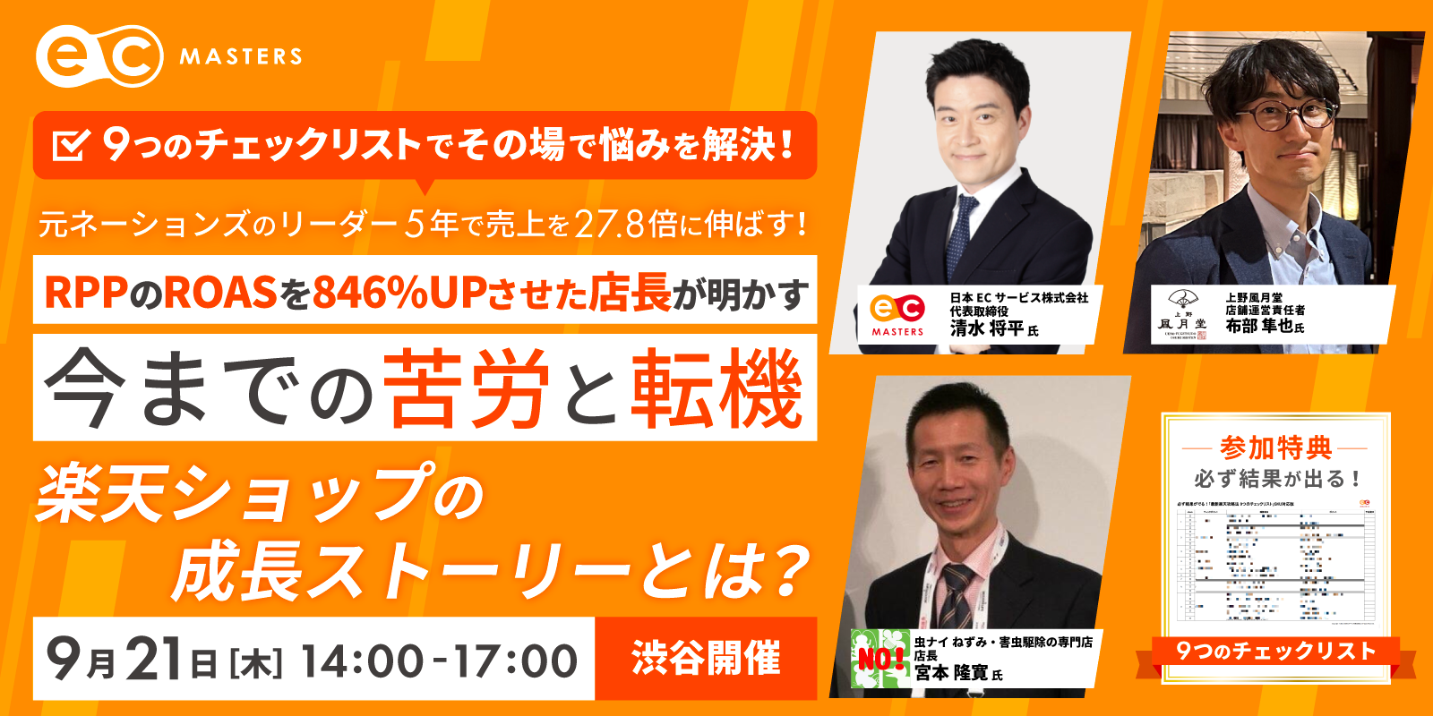 【9/21(木)渋谷開催】RPPのROASを846%UPさせた店長、5年で売上を27.8倍に伸ばした店長をゲストに限定セミナー開催!
