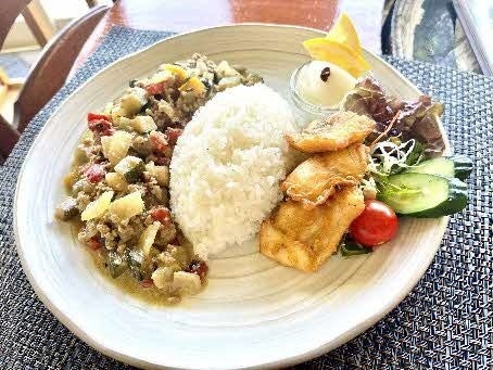 地元の野菜と豚ひき肉とココナッツミルクを贅沢に煮込んだ具材たっぷりのカレー!