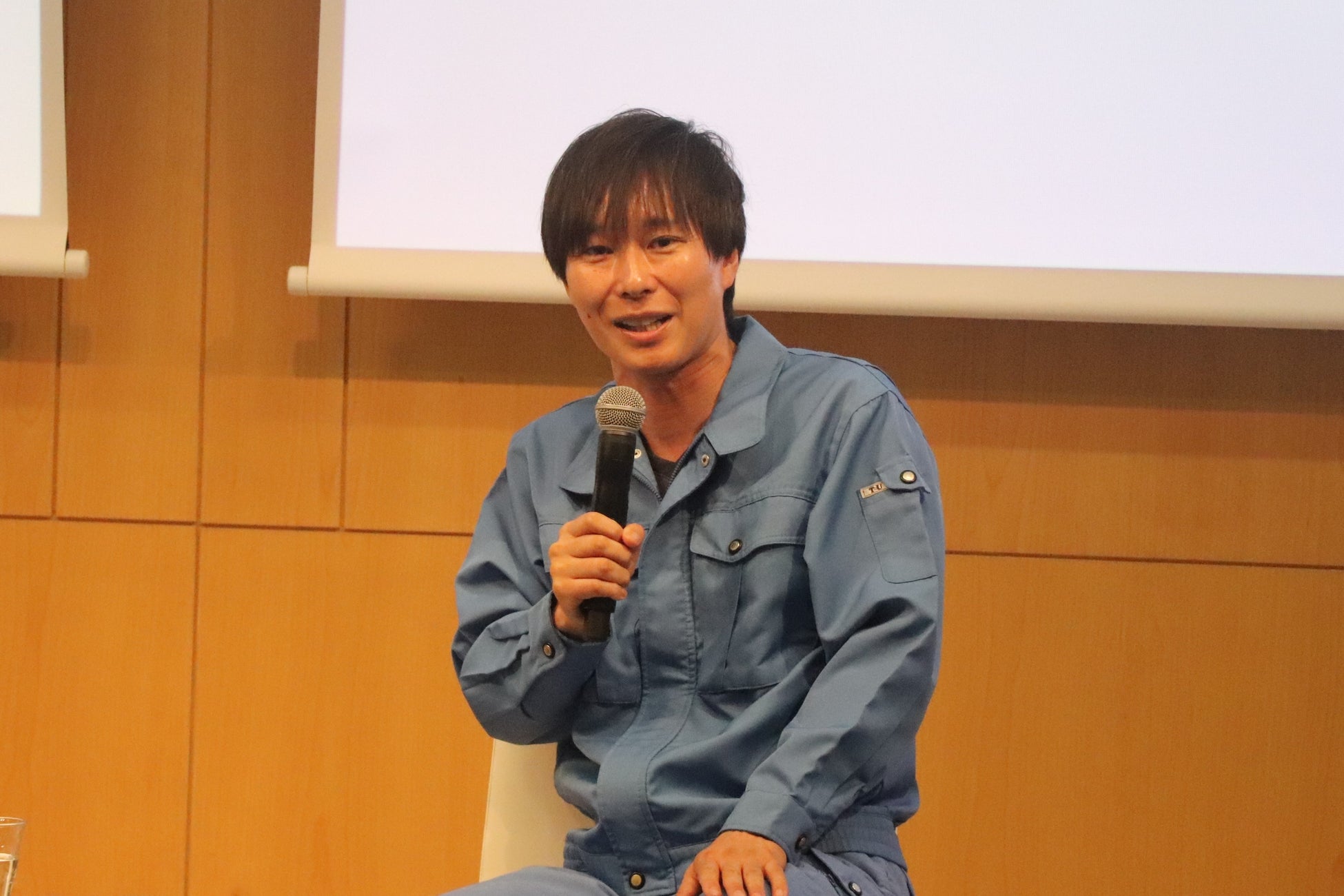 続いて、足立区出身の人気芸人 マシンガンズ滝沢さんと足立区シティプロモーション課長 栗木 希とのトークセッションを行いました。3歳から22歳まで足立区で過ごしたという滝沢さん。幼少期の頃の足立区は本当に治安が悪かったとのこと。現在とのギャップを知った滝沢さんはとても驚き、足立区が治安改善のため、ビューティフル・ウィンドウズ運動(※1)でまちをきれいにする取り組みをしていると聞いた滝沢さんは、「ゴミ集積所を見るだけでそのまちの状況がわかる」とゴミ清掃員ならではの視点で話されていました。