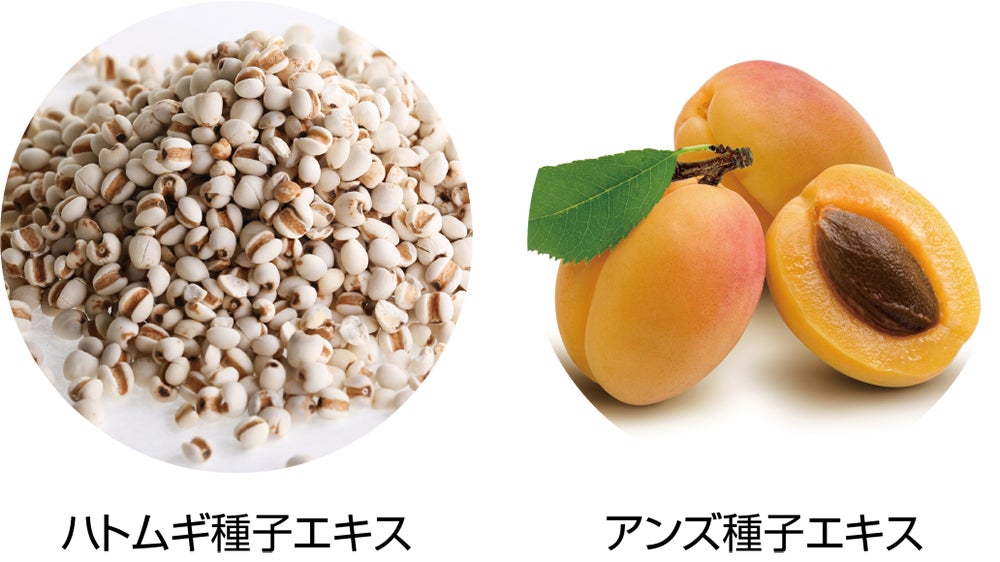 ヨクイニンエキス(ハトムギ種子エキス)&キョウニンエキス(アンズ種子エキス)配合。
