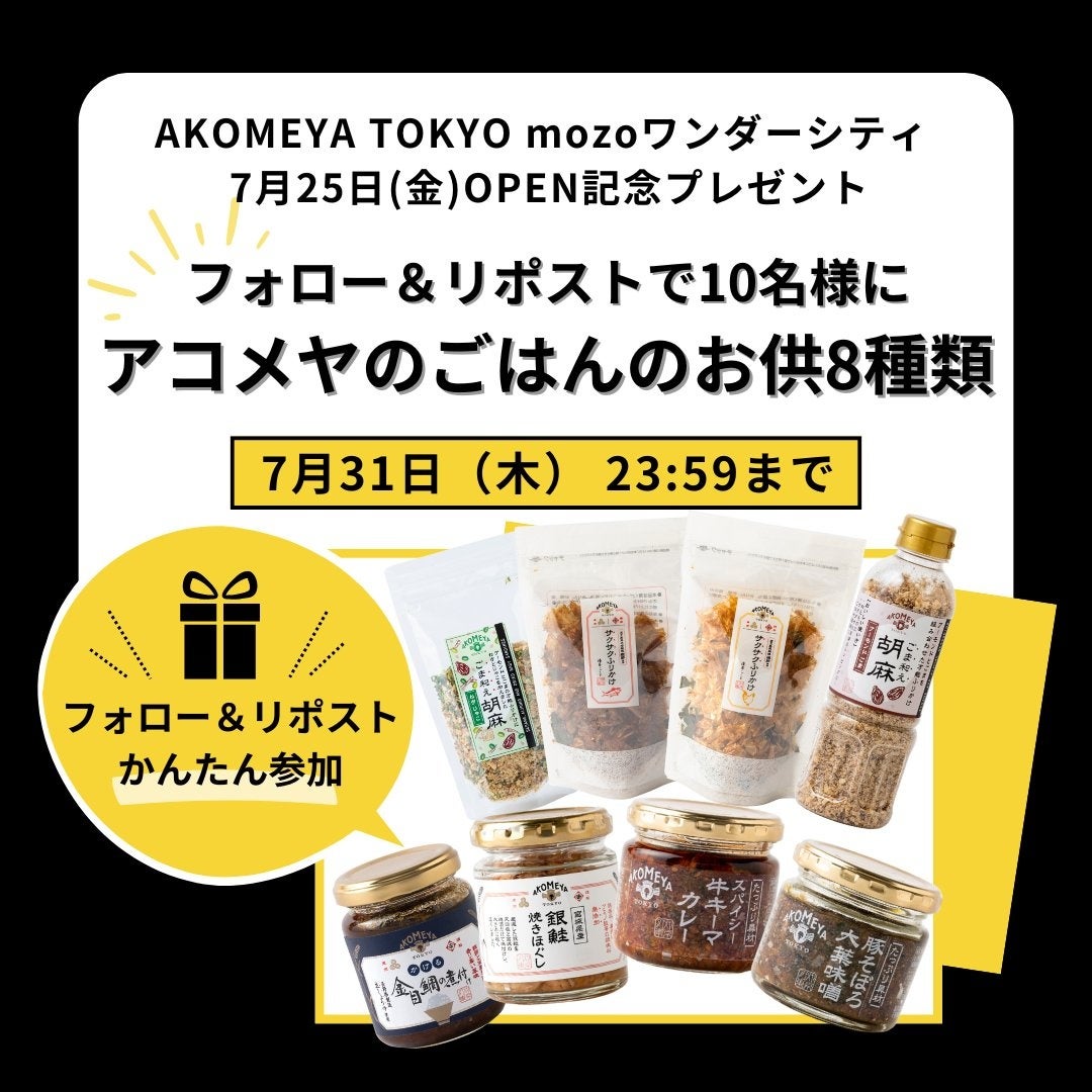 株式会社AKOMEYA TOKYO(本社:東京都渋谷区、代表取締役社長:山本 浩丈)が運営する、一杯の炊き立てのごはんを中心に広がるおいしい輪をコンセプトに全国から厳選されたお米と、お米に相性抜群のごはんのお供、出汁などの食品や、食器・調理道具などを扱うライフスタイルショップ「AKOMEYA TOKYO」は、愛知県名古屋市に「AKOMEYA TOKYO mozo ワンダーシティ」を7月25日(金)にオープンします。愛知県名古屋市内では2店舗目の出店となります。