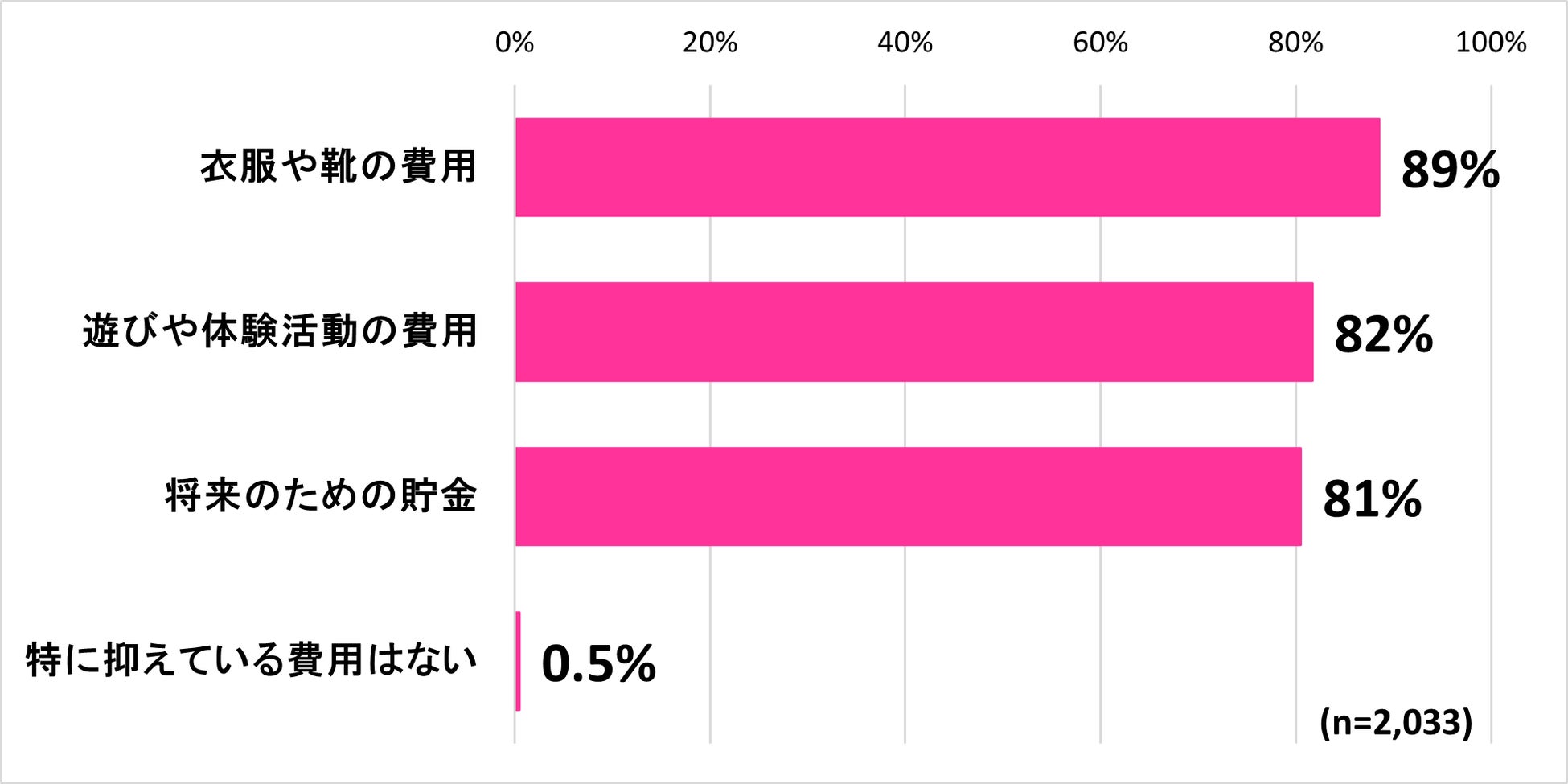 ■8割以上の家庭で「衣服や靴」「体験」の費用を割けていない