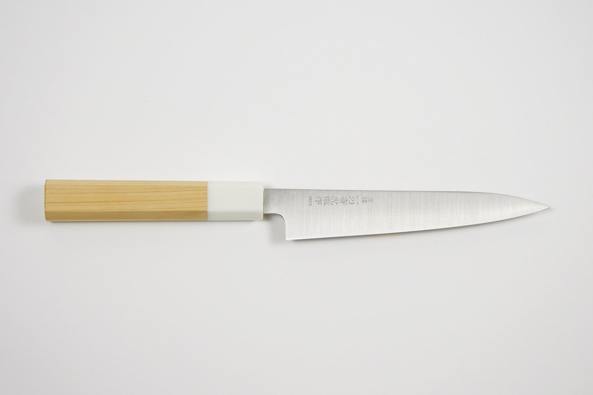 ▼INOX 和ペティ 青森ヒバ八角人工大理石口輪柄 青森ヒバ鞘付(一刀斎虎徹)[株式会社高橋楠]
