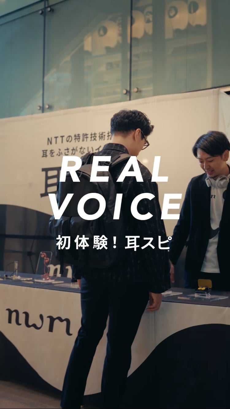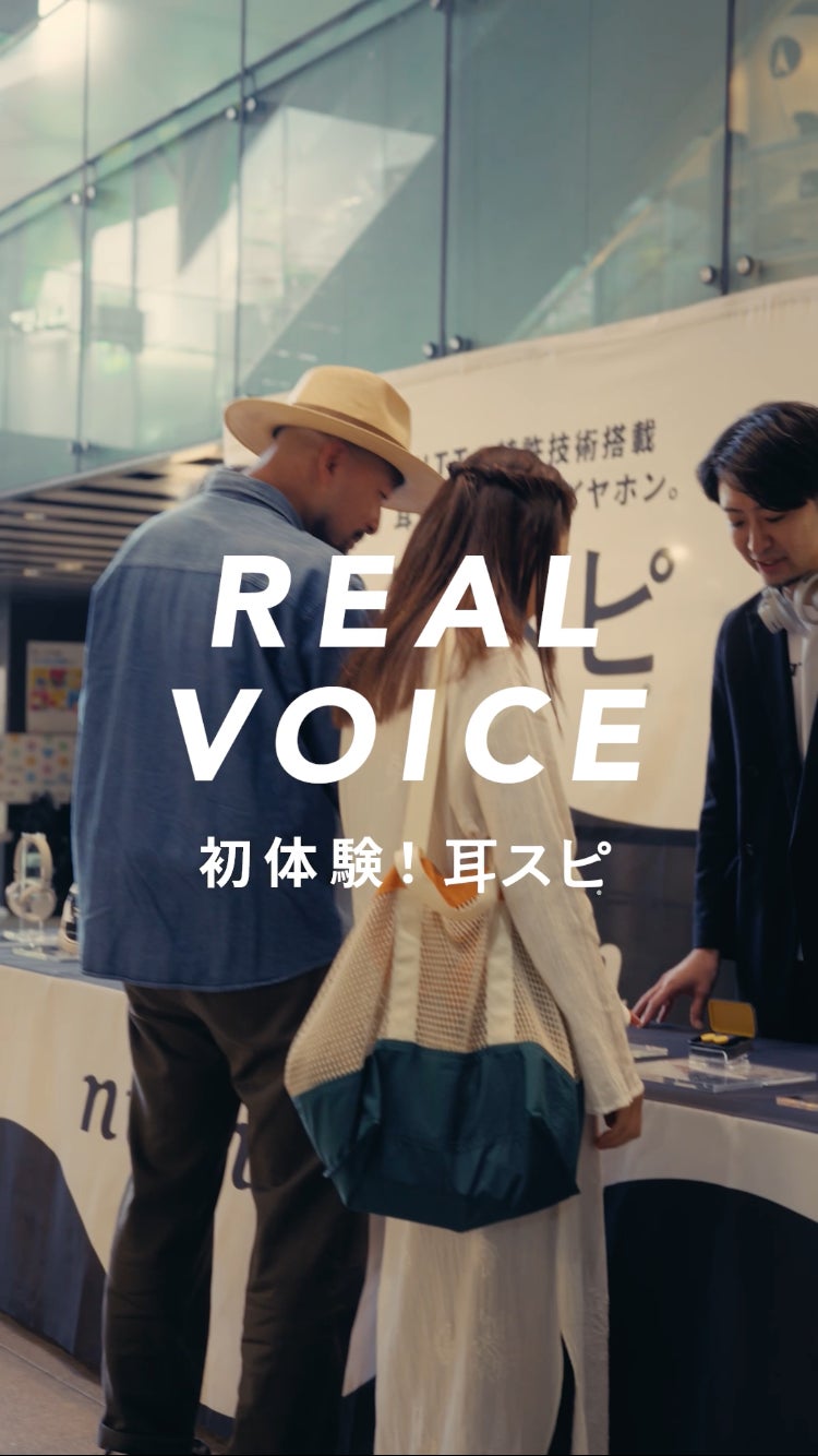 「REAL VOICE -初体験!耳スピ-」と題し、体験会で初めて耳スピを体験した10組のリアクションや感想を収めたショート動画コンテンツ。総集編3本に加え、10組のリアルボイスを収録した10本を展開します。
