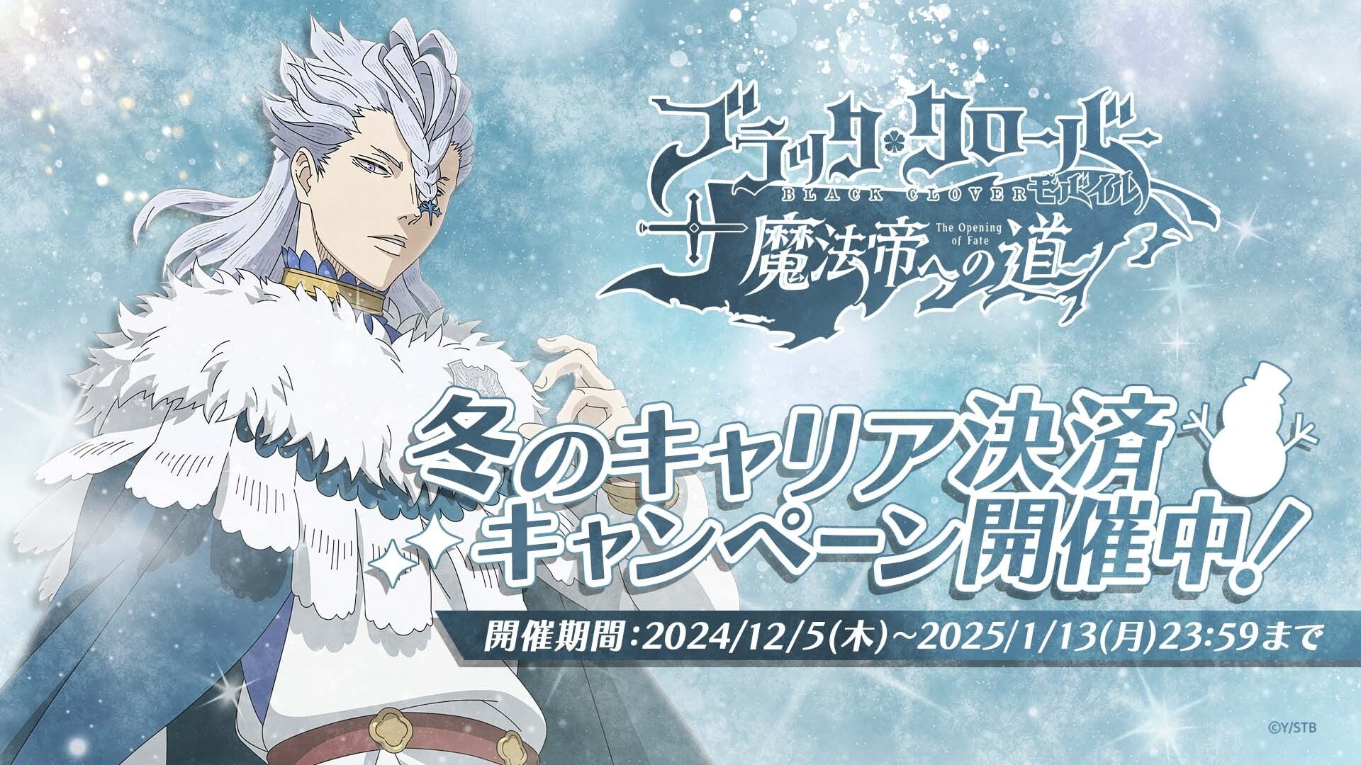 株式会社VIC GAME STUDIOS JAPAN(東京都新宿区、代表取締役:李 同校)は、テレビアニメ『ブラッククローバー』のアプリゲーム『ブラッククローバーモバイル 魔法帝への道 The Opening of Fate』(以下、ブラクロモ)において、「2024年 冬のキャリア決済キャンペーン」を開催いたします。