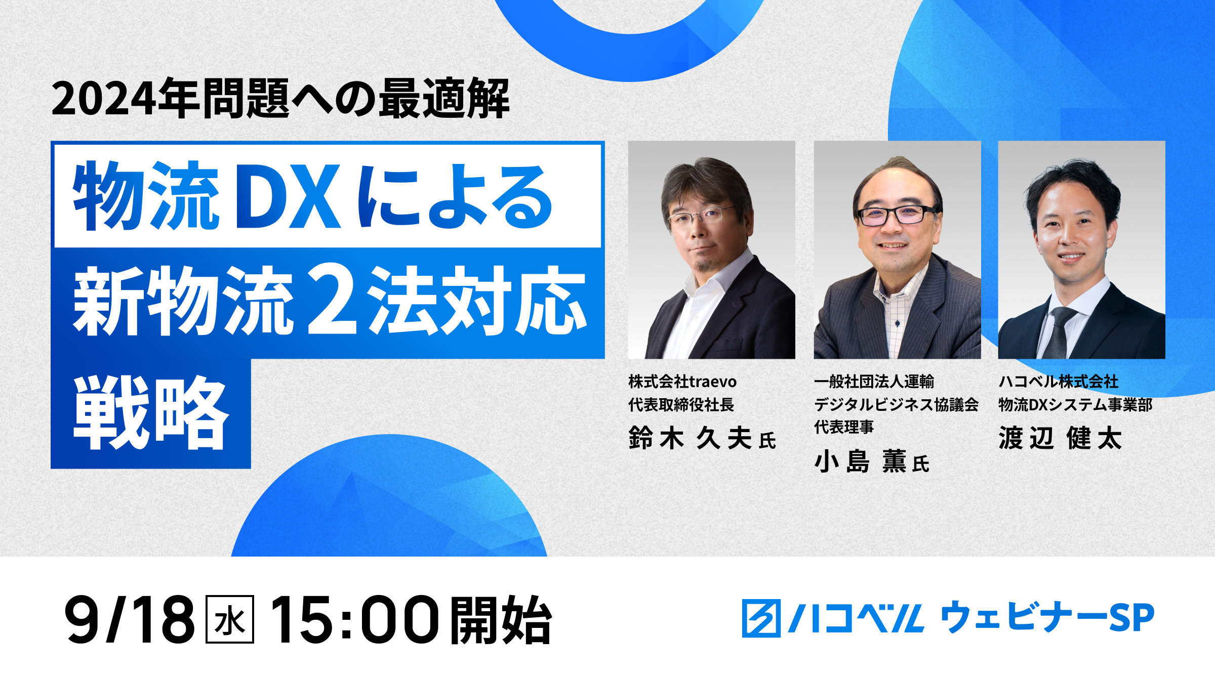 【2024年9月18日(水)ハコベルウェビナー開催】2024年問題への最適解:物流DXによる新物流2法対応戦略