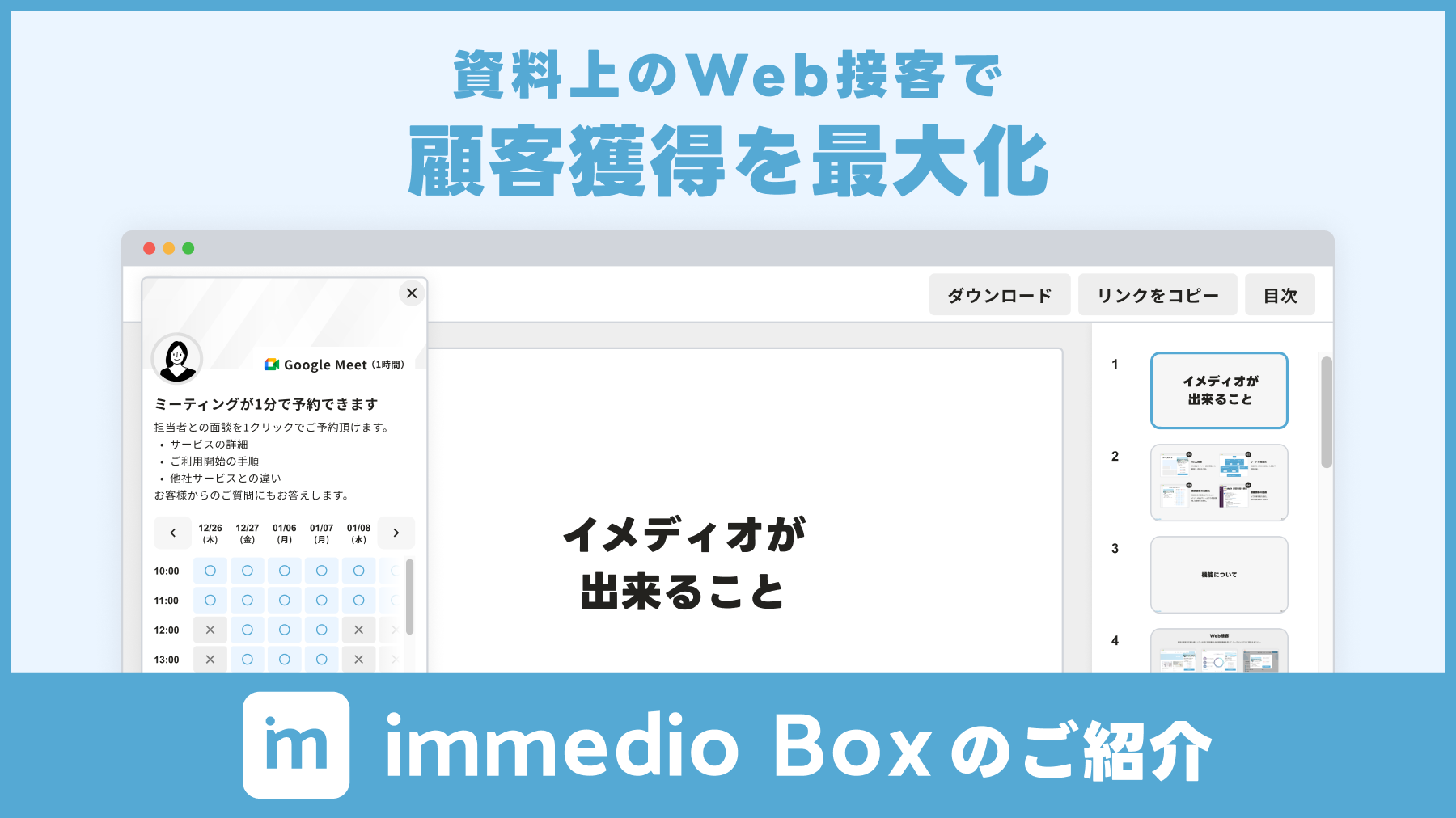 資料上のWeb接客で商談を最大化する「immedio Box」提供開始