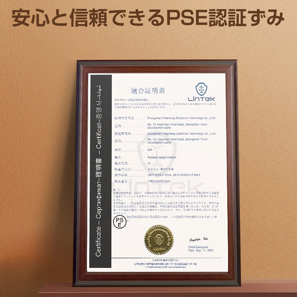 【PSE認証ずみ】安心と信頼のPSE認証を取得。