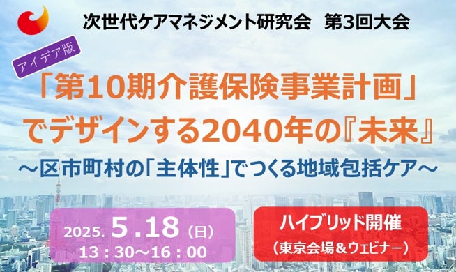 株式会社シード・プランニング(本社:東京都文京区、代表取締役社長:梅田 佳夫)が事務局を務める「次世代ケアマネジメント研究会」は2025円5月18日(日)、研究大会として「『第10期介護保険事業計画』でデザインする2040年の『未来』~区市町村の『主体性』でつくる地域包括ケア~」を開催します。