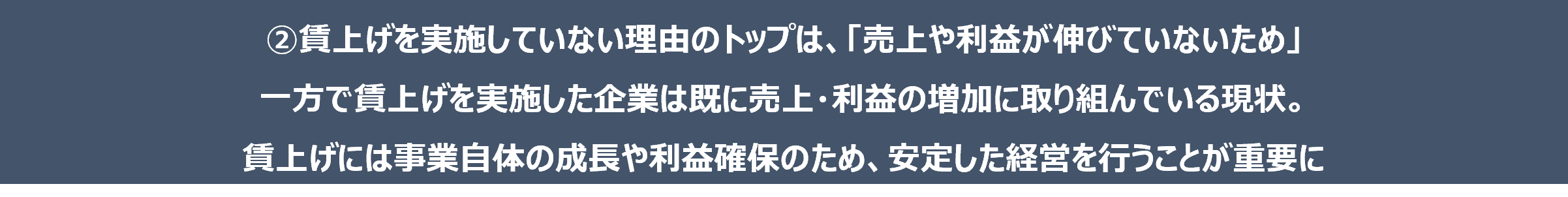 ②賃上げを実施していない理由のトップは、「売上や利益が伸びていないため」が4割