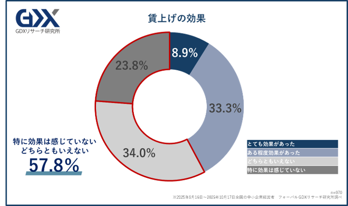 〈2025年度第2回 中小企業経営実態調査〉高市政権の「賃上げ」方針と企業現場のギャップ賃上げ実施企業の約6割が「効果を感じていない」と回答