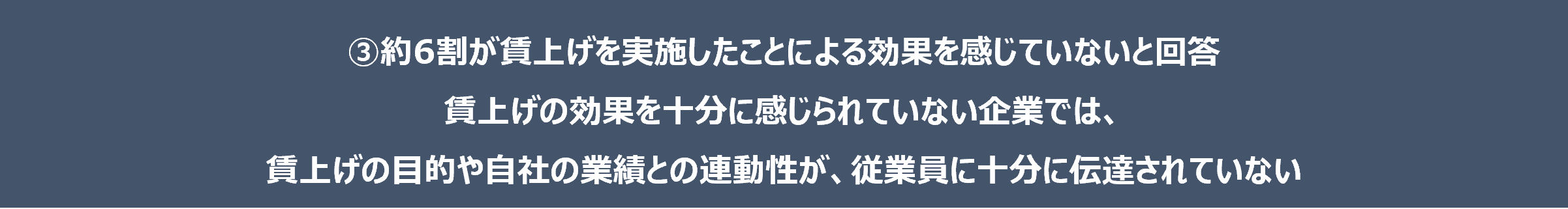 ③約6割が賃上げを実施したことによる効果を感じていないと回答