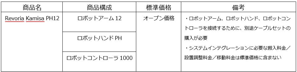 今回発売する「Revoria Kamisa PH12」は、紙さばきに必要な複雑な動きを自律制御するロボットアームと紙種やサイズに応じてつかむ⼒を調整するロボットハンド、および周辺機器で構成されるロボットシステムです。「Revoria Kamisa PH12」は、刷本の束を持ち上げる昇降機や、紙揃え機など周辺機器と組み合わせる(※5)ことにより、昇降機に載った刷本をロボットハンドでつかみ、さばきながら直接紙揃え機へ運ぶことで、断裁前の紙揃えまでの一連の用紙ハンドリング作業を自動化(※6)/(※7)します。断裁前工程におけるオペレーターの作業負荷を軽減することで、印刷製造工程の省人化を実現し、印刷現場のスマートファクトリー化を加速します。また本商品は今後、欧州・北米・アジアパシフィック地域での発売も予定しています。