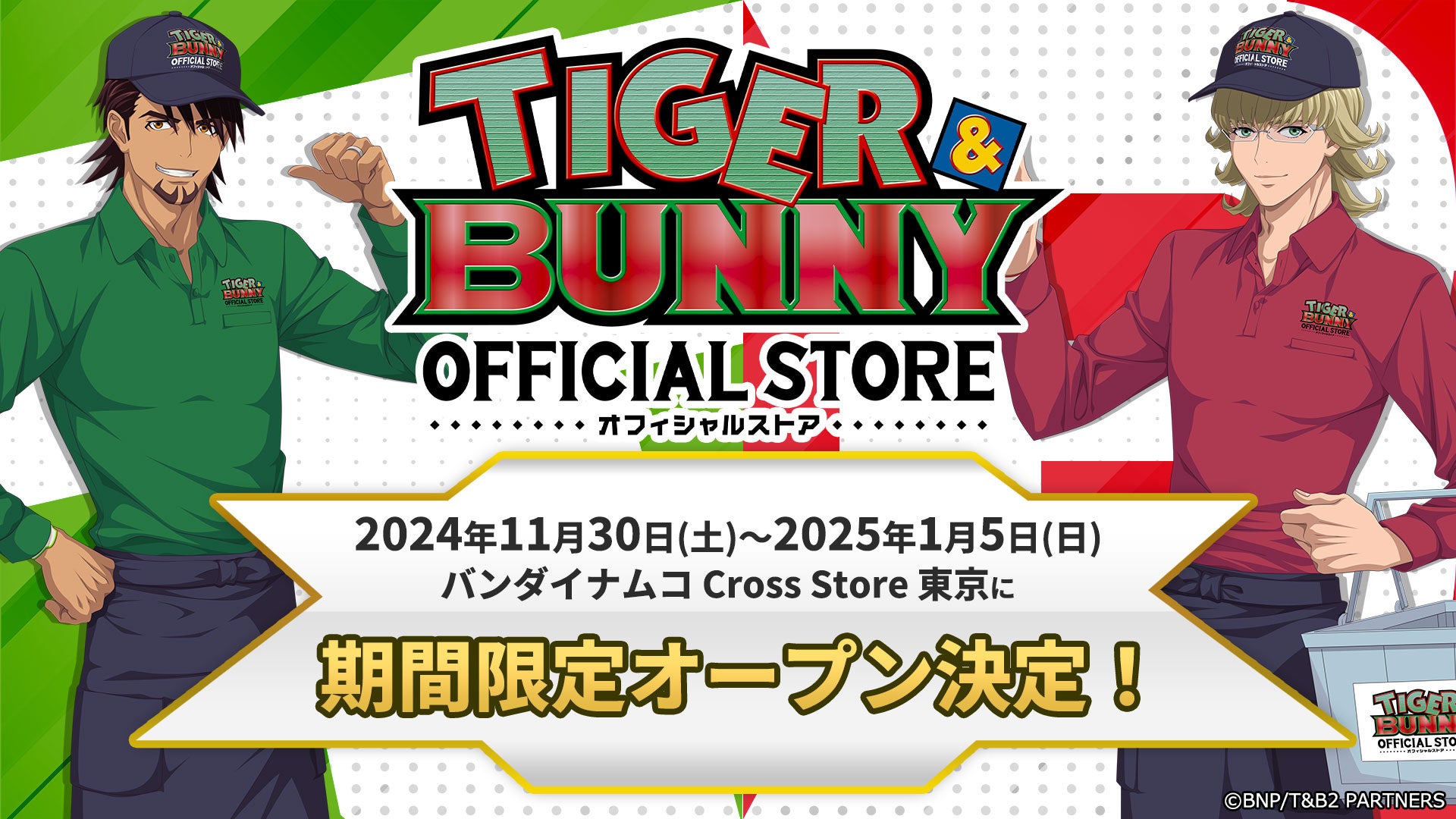 株式会社バンダイナムコピクチャーズ(本社:東京都杉並区、代表取締役社長:佐藤弘幸)は、オリジナルアニメ「TIGER & BUNNY」シリーズのオフィシャルストアを11月30日より期間限定でオープンいたします。