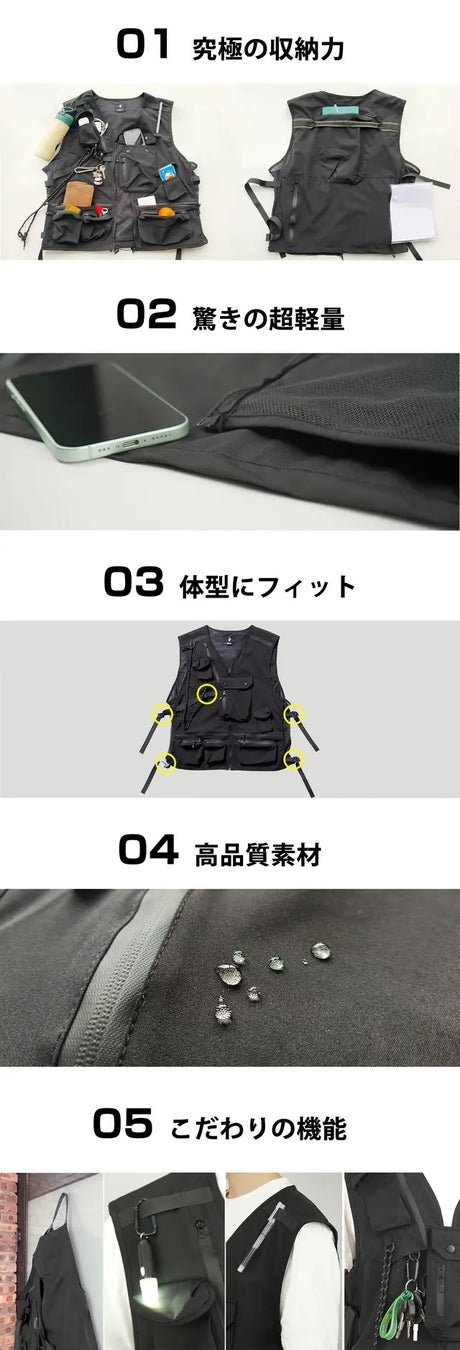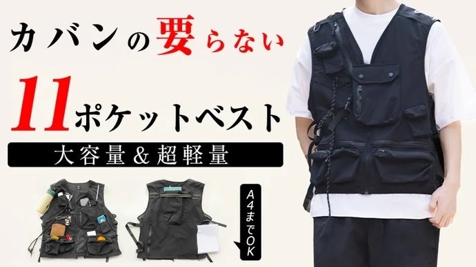 究極の収納性を実現する11個のポケットと驚きの軽さの大人のベスト