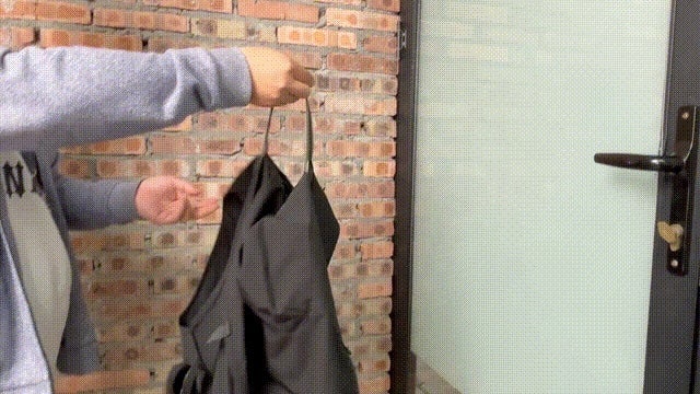 背中にはストラップが付いており、手で持つ必要がある時に落とさずにサッと持てたり、室内ではフックにかけて吊るすこともできます。