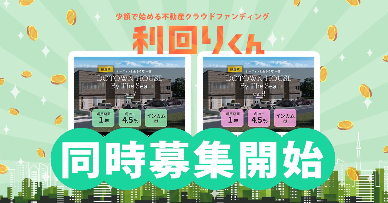 不動産クラファンの利回りくん、地域活性化ファンドシリーズの 「DOTOWN HOUSE By The Sea Vol.7 & Vol.8」の同日募集を組成いたします!