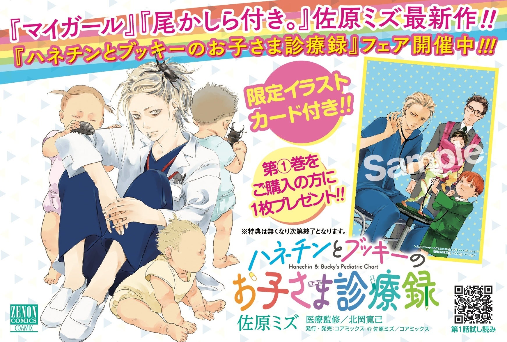 【限定特典あり!!】佐原ミズ最新作!! 小児医療を描く『ハネチンとブッキーのお子さま診療録』第1巻発売記念フェア開催!!