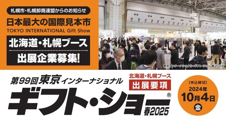 札幌市は、日本最大の国際見本市「東京インターナショナル・ギフト・ショー春2025」に“北海道・札幌ブース”で出展する道内企業を募集しています。申込締切は10月4日(金)まで。