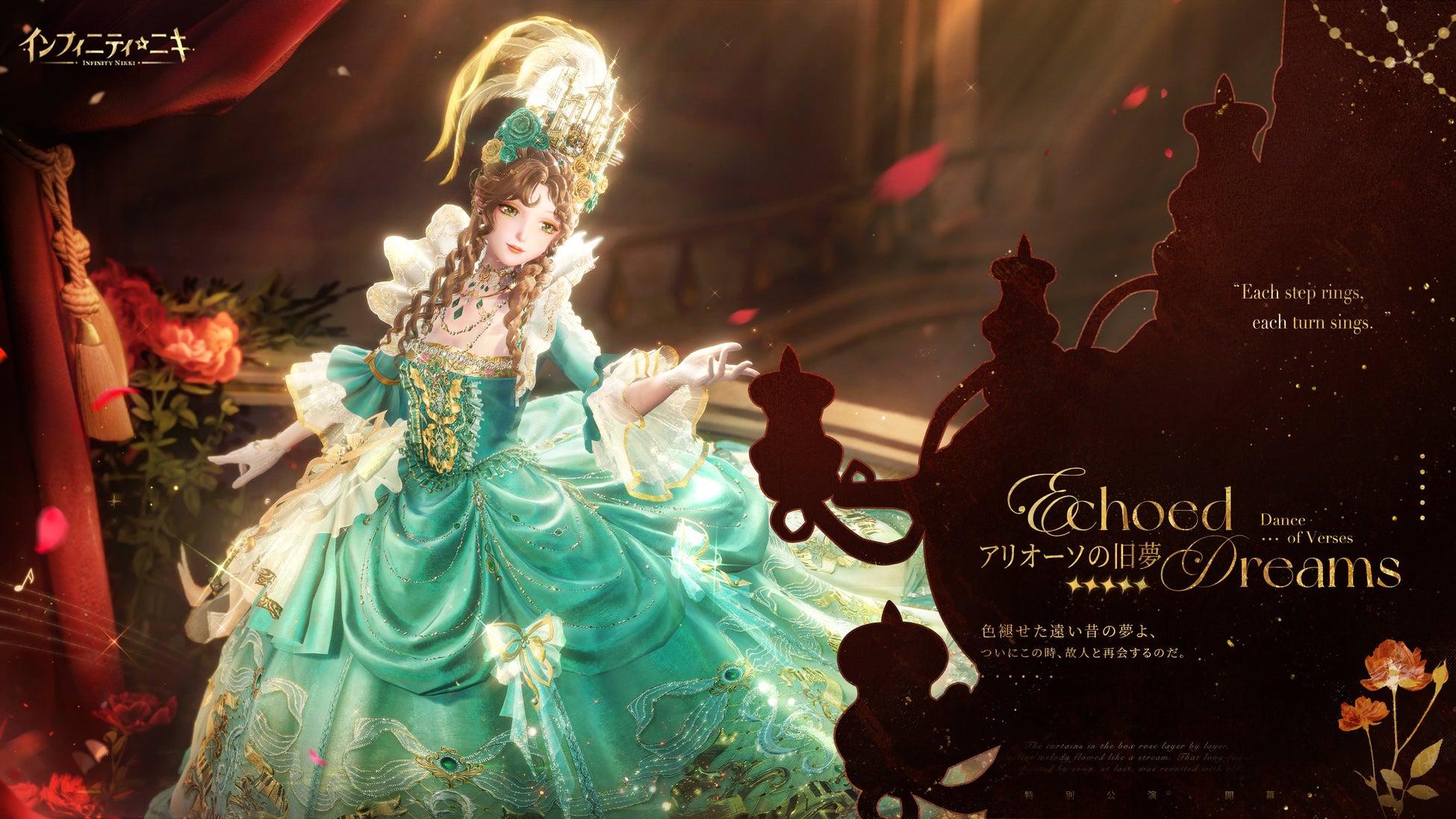 スキル「叙唱の舞」を獲得し、使用すると、ニキはリバーブの絨毯を召喚できる。異なる音符を短く押すと、それに合わせて優雅にステップを踏み、つま先を返すたびに音が響き、美しい曲が生まれる。マルチプレイ中に叙唱の舞を使用すると、ほかのスタイリストを絨毯に招き、共に演奏し踊ることができる。二人で音符を奏でれば、姿が重なり、麗しい旋律が響き渡る。