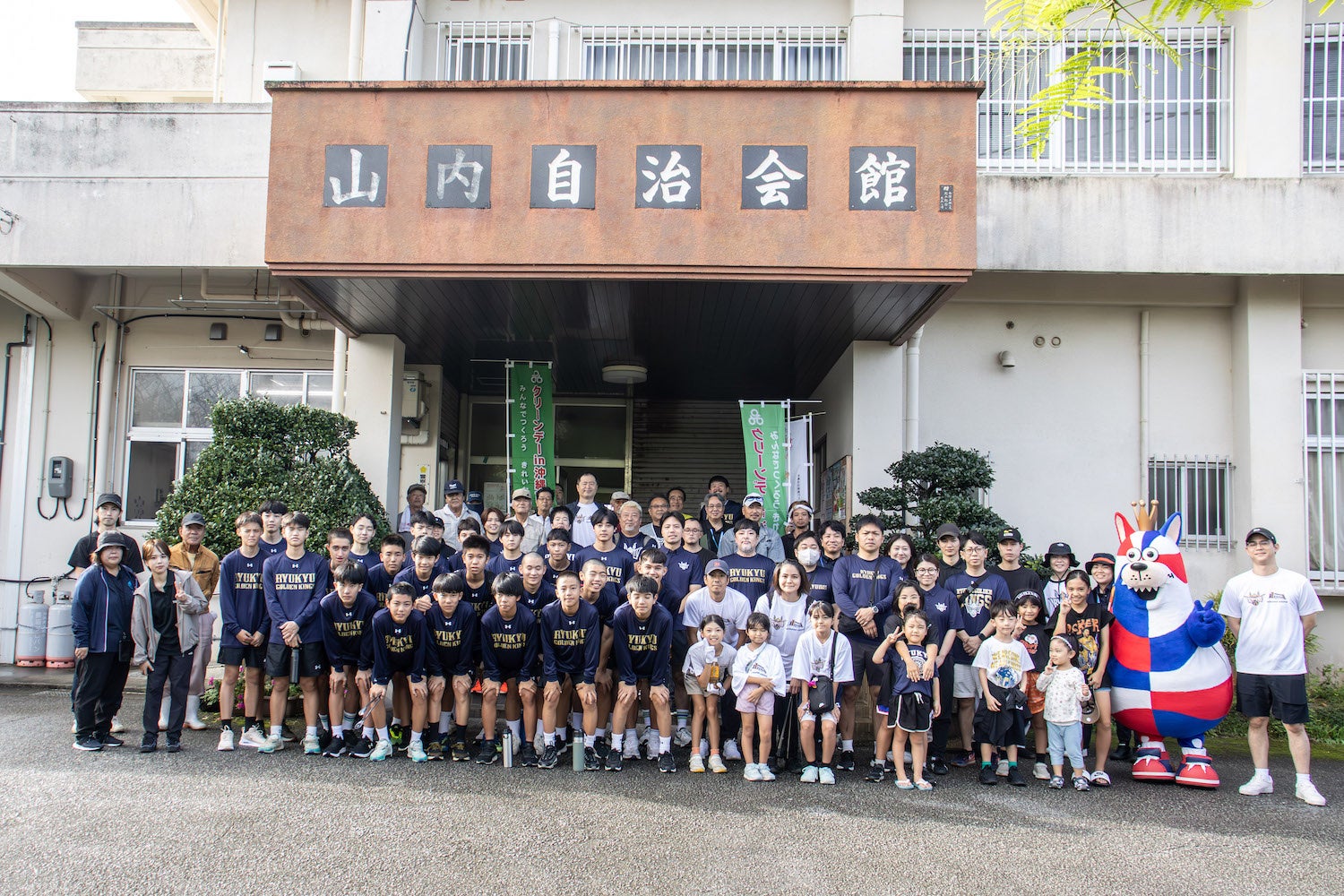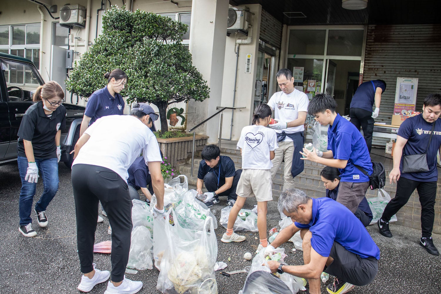 当日は天候にも恵まれ、地域の皆さまと交流を図りながら、沖縄アリーナが位置する沖縄市山内地区の美化活動を行いました。