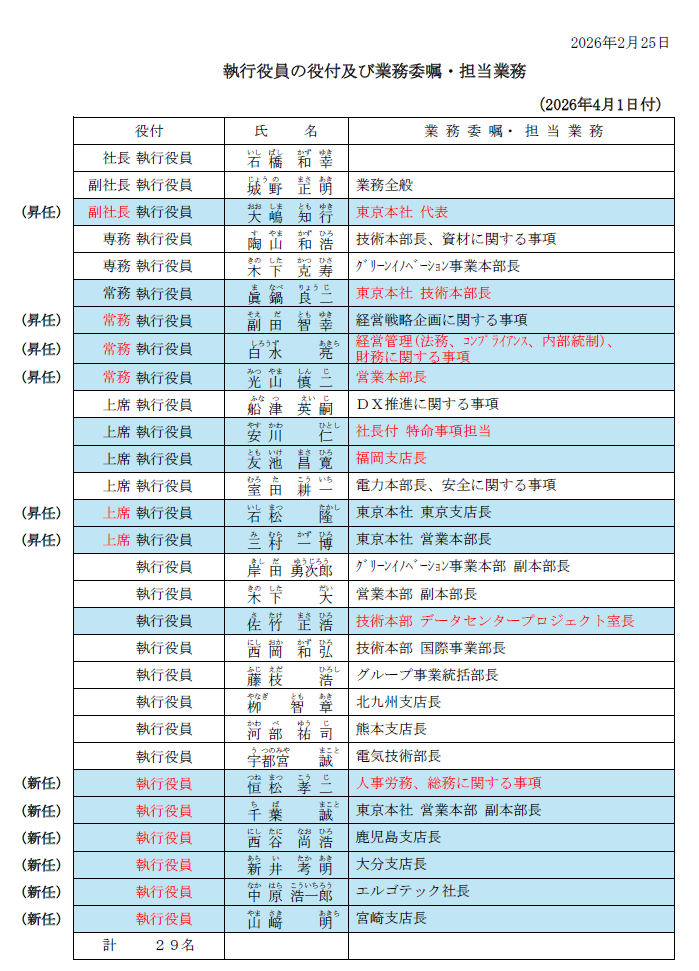 1.執行役員の役付及び業務委嘱・担当業務(2026年4月1日付)