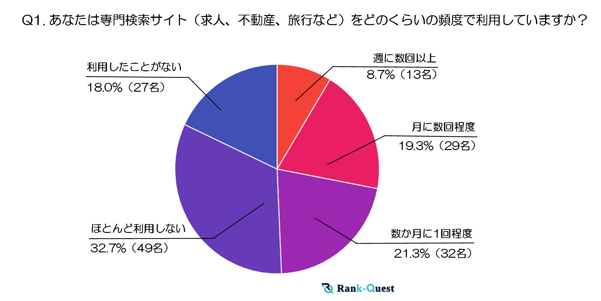 調査結果①:あなたは専門検索サイト(求人、不動産、旅行など)をどのくらいの頻度で利用していますか?