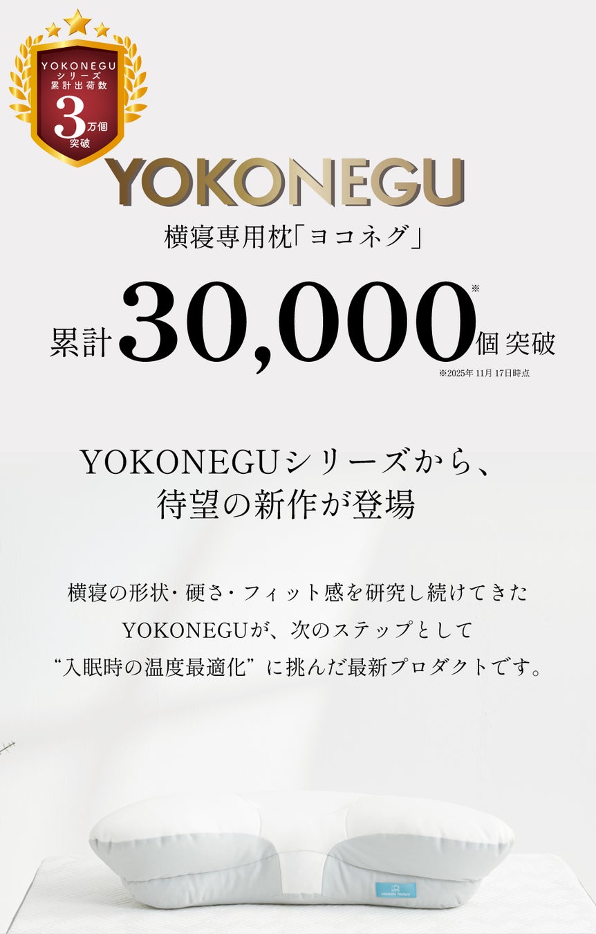 冷たすぎず暑すぎない。夜の“ちょうどいい温度”をつくる枕「YOKONEGU Premium ℃(ヨコネグプレミアムドシー)」創業68年の寝具メーカーが運用するcocochi factory(ココチファクトリー)の大好評YOKONEGUシリーズ最新作の枕です。