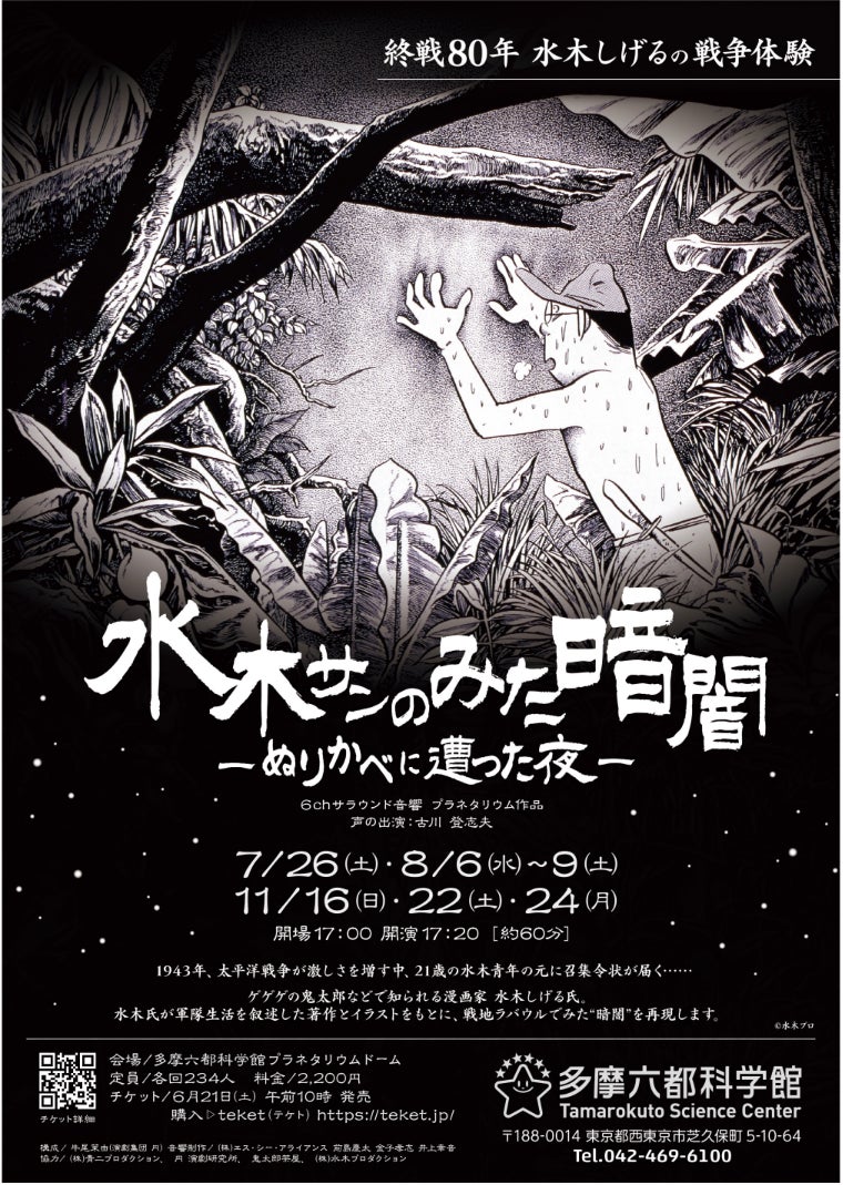 【多摩六都科学館】水木しげる氏の戦争体験を描いたプラネタリウム番組「水木サンのみた暗闇 ―ぬりかべに遭った夜―」 戦後80年の夏に投影決定