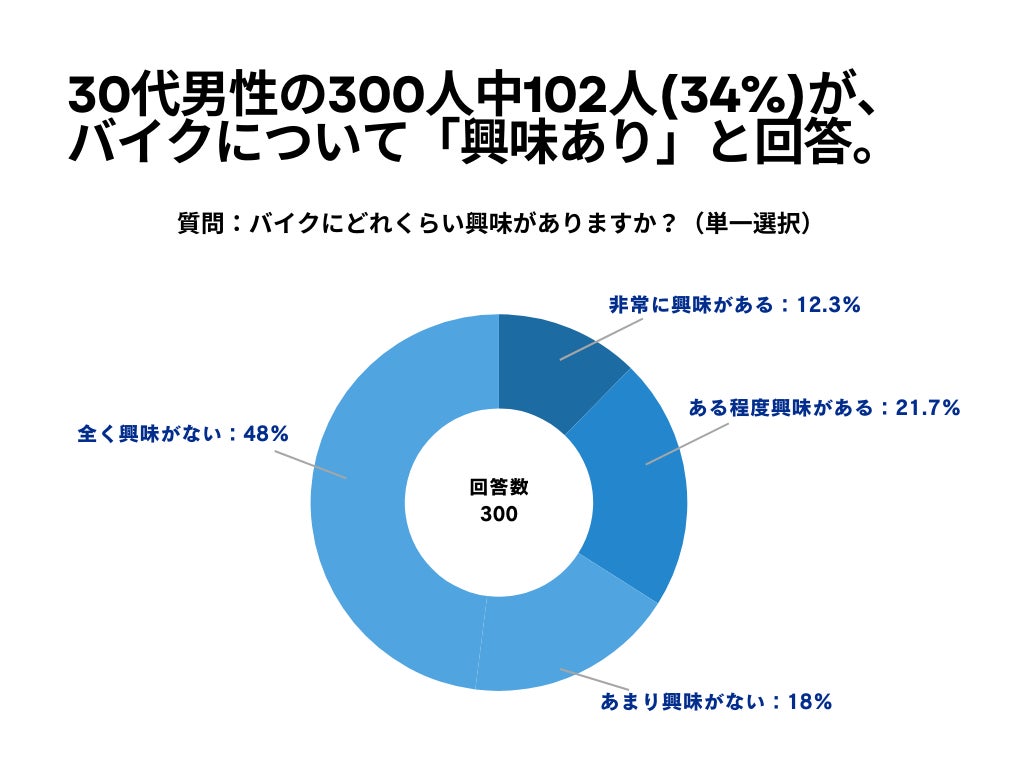 30代男性の300人中102人(34%)が、バイクについて「興味あり」と回答【バイクに関するアンケート】