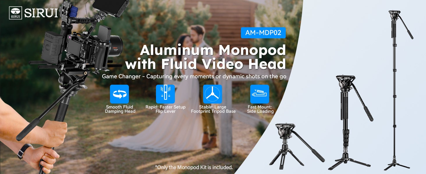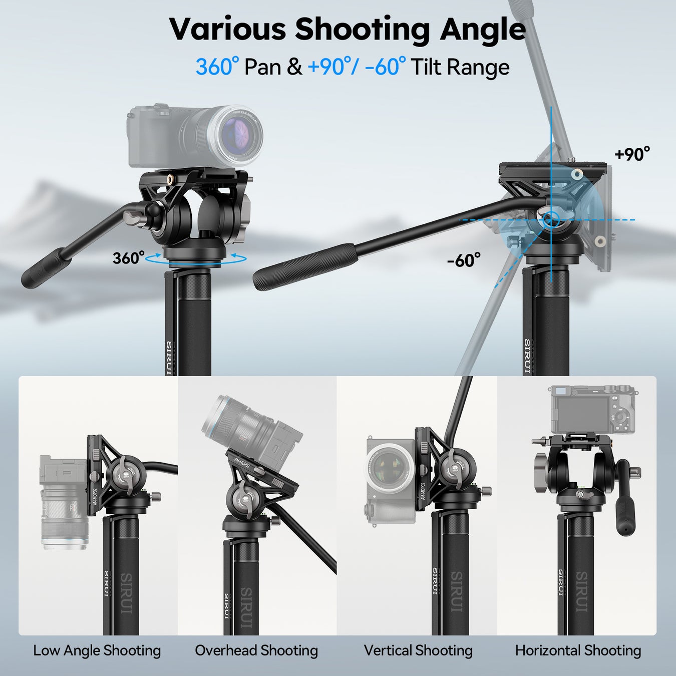 【新製品】SIRUI AM-MDP02 188cm 軽量ポータブルアルミ一脚 | パンチルトフルヘッド&三脚ベース付き | 最大荷重8kg | DSLR・カムコーダー対応 – 完璧なトラベル用一脚!