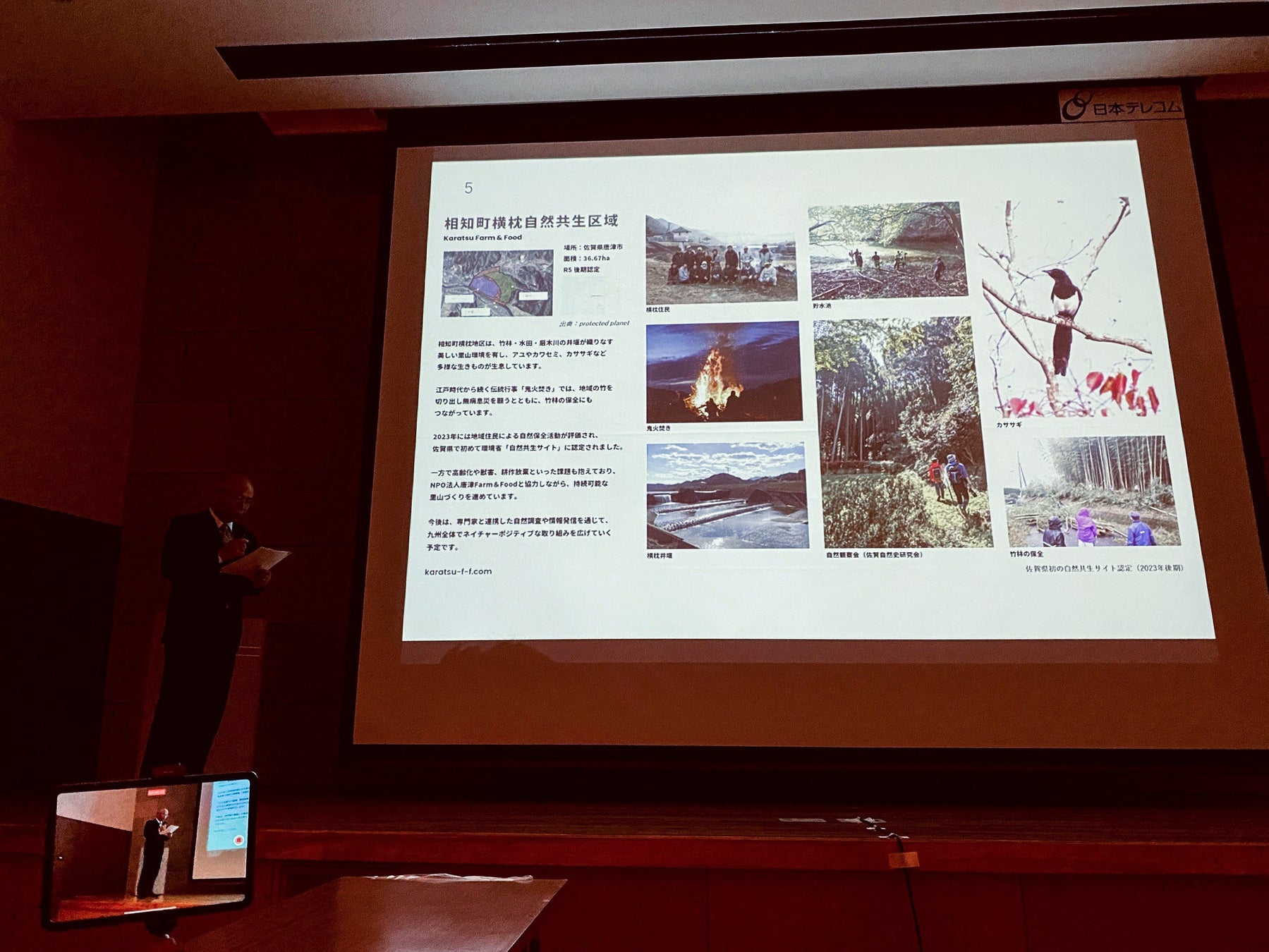 5月22日、北九州市「いのちのたび博物館」で開催されたシンポジウム『ネイチャーポジティブな社会を九州の地から』では、横枕の取り組みが地域事例として紹介されました。九州各地の自然共生サイトによる発表が行われる中、横枕からは住民代表が登壇し、代々受け継がれてきた里山の保全活動と、世代を超えた協働のあり方について発信しました。