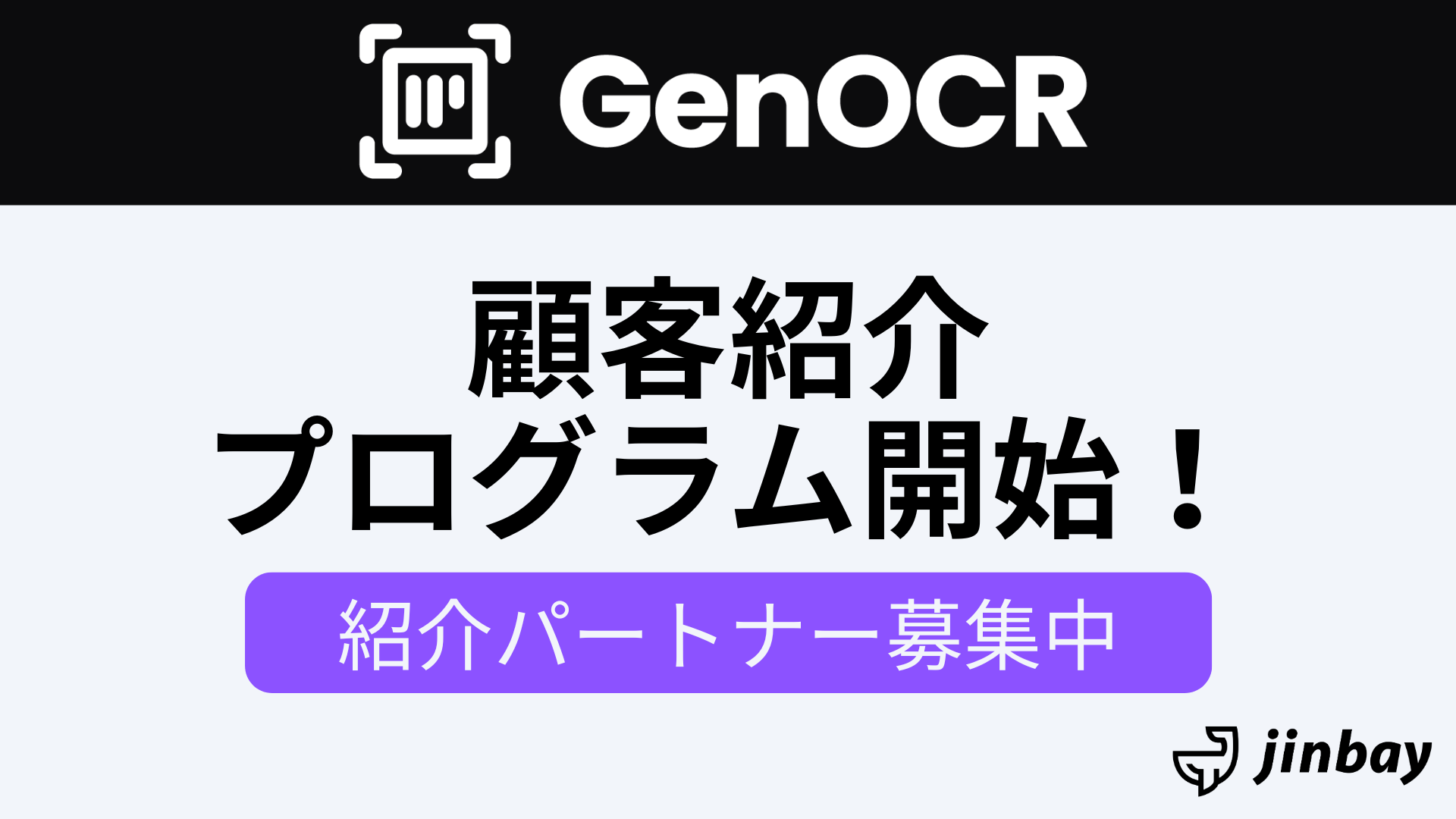 AI-OCR「ジンベイGenOCR」、顧客紹介プログラムを開始――紹介パートナーを広く募集