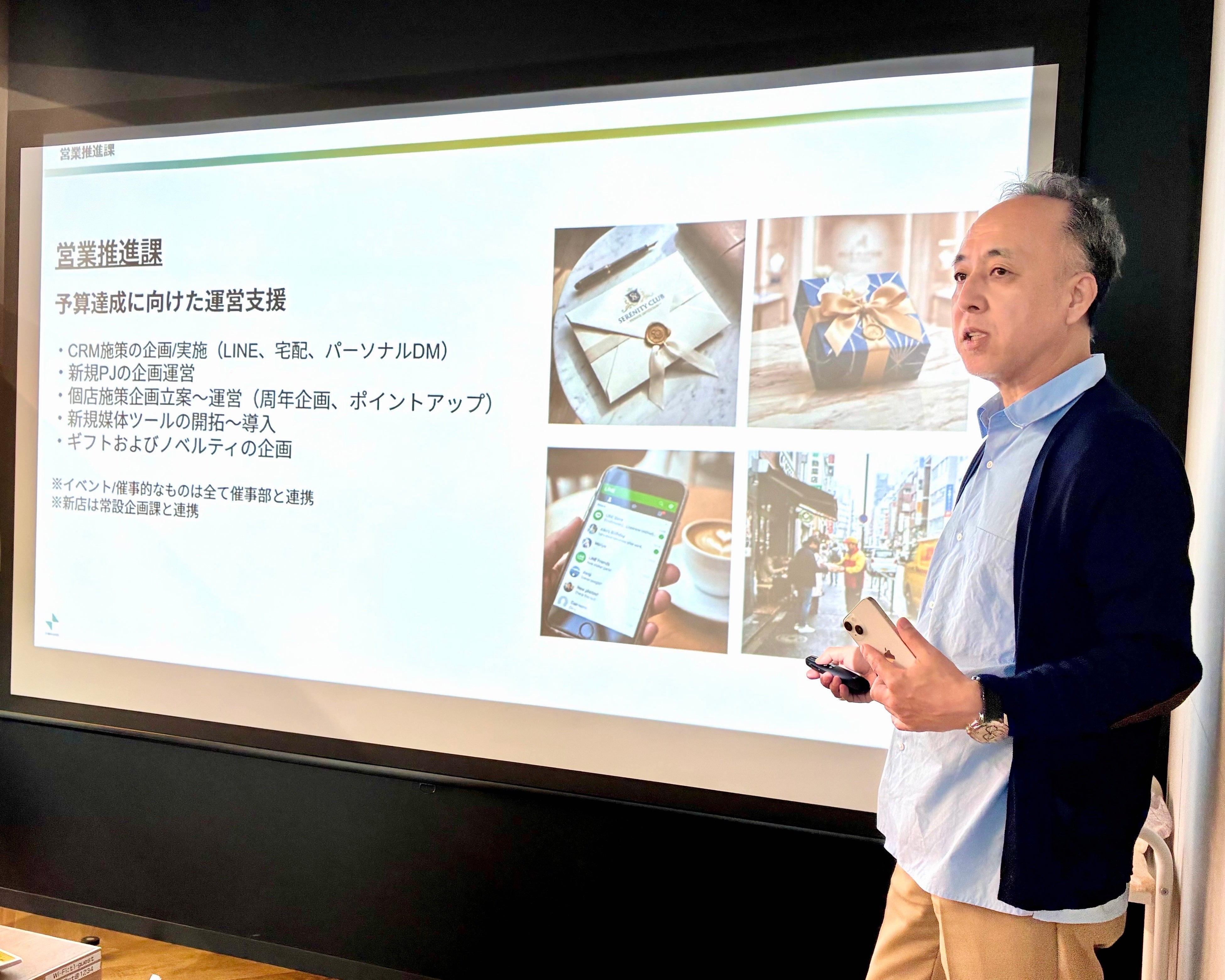 まず、管理部より弊社の生い立ちやMVV、ブランドプロミス「想いによりそうパートナー(以下「想パ」)」などの会社説明をいたしました。また、社長や部長陣から各部署の概要や各部のMVVに対する想いをご説明し、全社理解をより深めました。