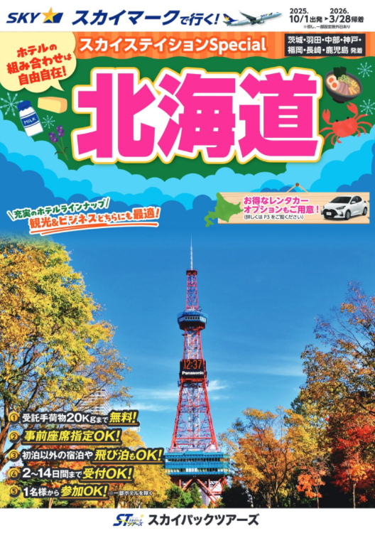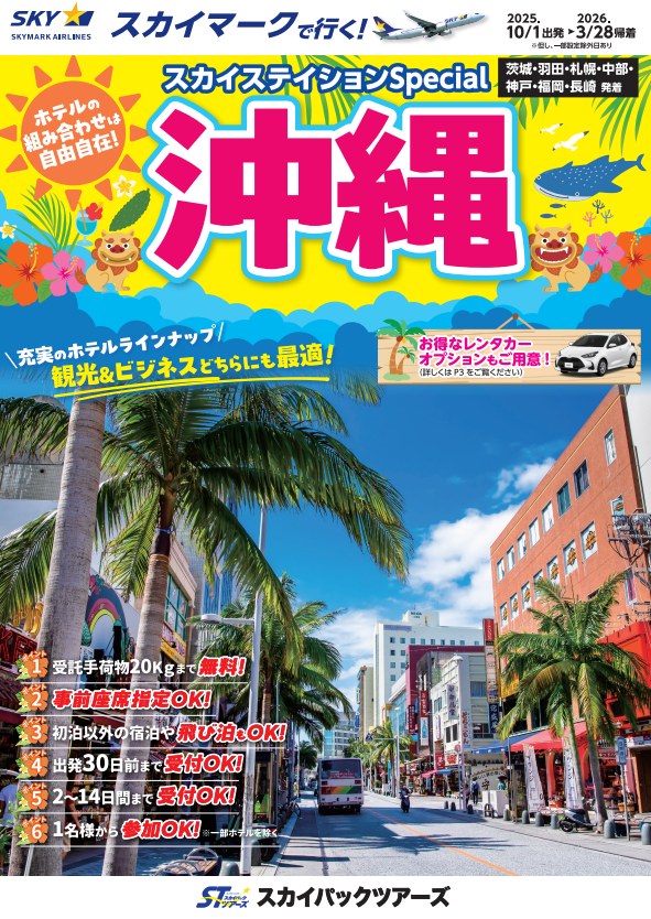 2026年3月29日出発~2026年10月24日帰着分のスカイマーク航空券とホテルがセットになった旅行商品ダイナミックパッケージ『スカイマーク公式・たす旅』を本日・1月27日(火)販売開始しました!