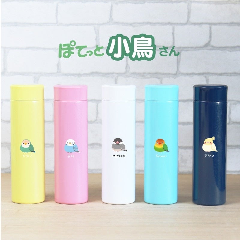 一番人気。安心のTHERMOS社製の水筒+ぽてっと小鳥さん